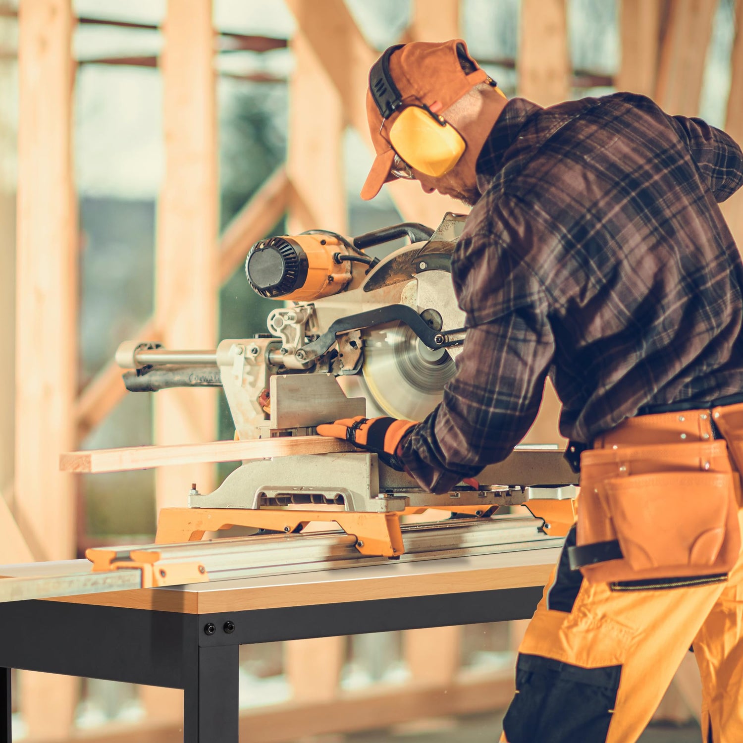 - Heavy Duty Work Bench: Constructed of high quality materials, the workbench consists of a 1" thick wood board tabletop and black textured steel frame that withstands powerful impacts up to 2000 lbs