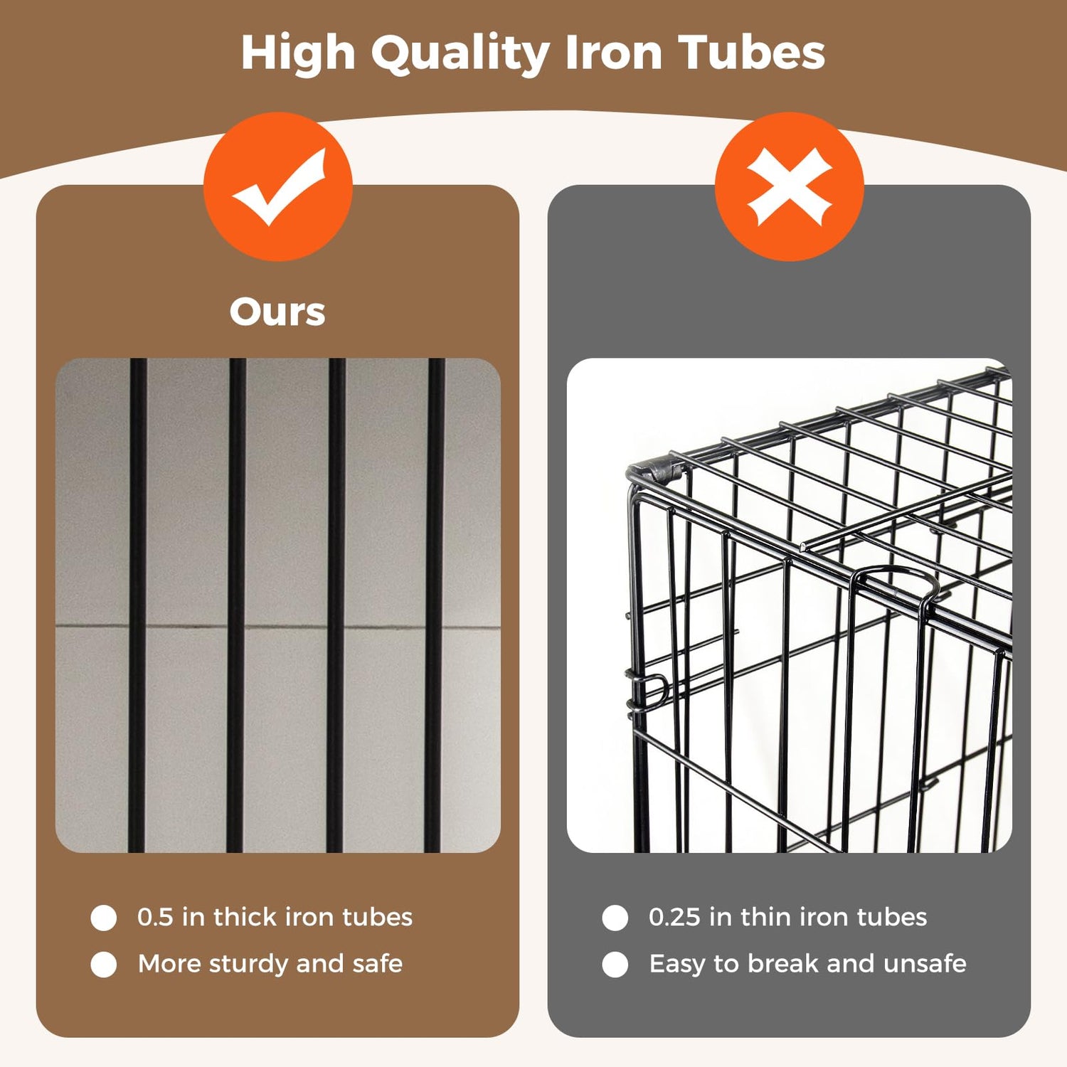 - 【Heavy Duty Dog Crate】Our dog crate is made with durable material for pet-safe durability and long service life. 0.5 inch thick iron pipe, which make it sturdier and more chew-resistant than others, providing a durable, stable and safe resting place for your dogs.