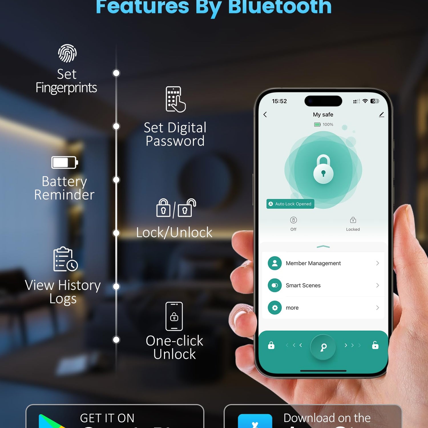- SMART APP CONTROL - The intelligent gun safe includes a free dedicated app, supporting the addition/deletion of up to 20 fingerprints and 6-digit passwords, along with real-time monitoring of unlock history and battery level. One-touch unlocking via screen swipe ensures both convenience and security. (Note: Requires Bluetooth connectivity within range.)