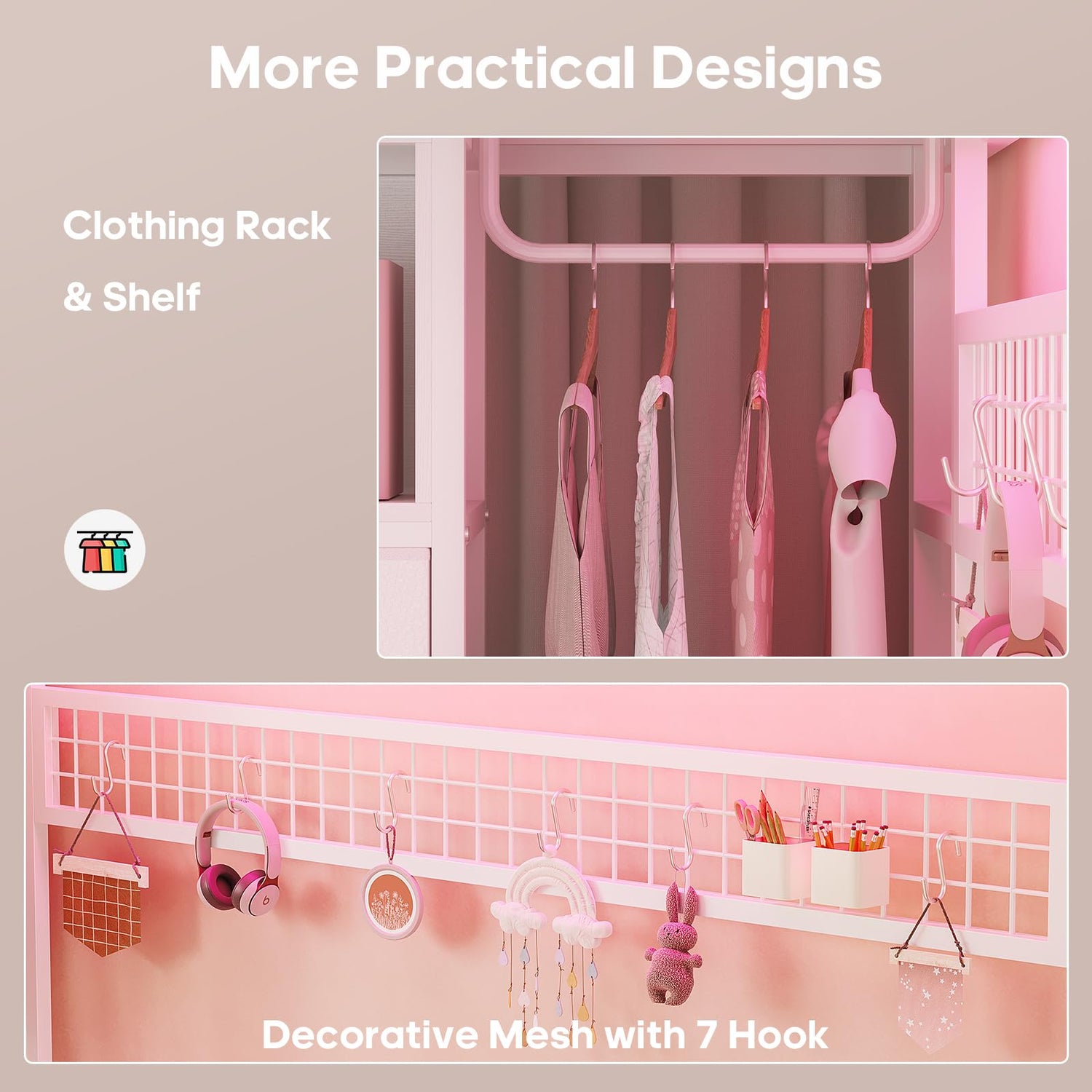 - 【Multi-Functional Loft Bed】 This Loft Bed Full Size maximizes every inch of space with 8 extra-large fabric drawers, 2 open shelves, a full-length clothing rack, and a customizable pegboard with 7 hooks—perfect for organizing clothes, books, accessories, and even school supplies! No more clutter, just sleek efficiency for busy teens