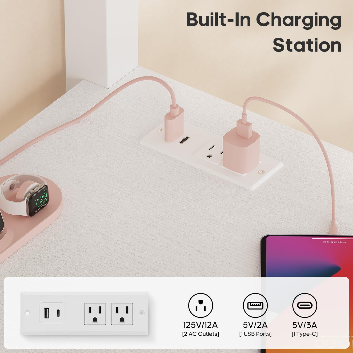 - 【Built-In Study Desk with Charging Hub】 The Loft Bed with Desk features a spacious 55.4" x 14.2" desktop paired with an integrated power strip (2-Outlets +1 USB Port + 1 Type-C )—ideal for laptops, homework, gaming setups, or late-night study sessions. Everything stays powered and within reach
