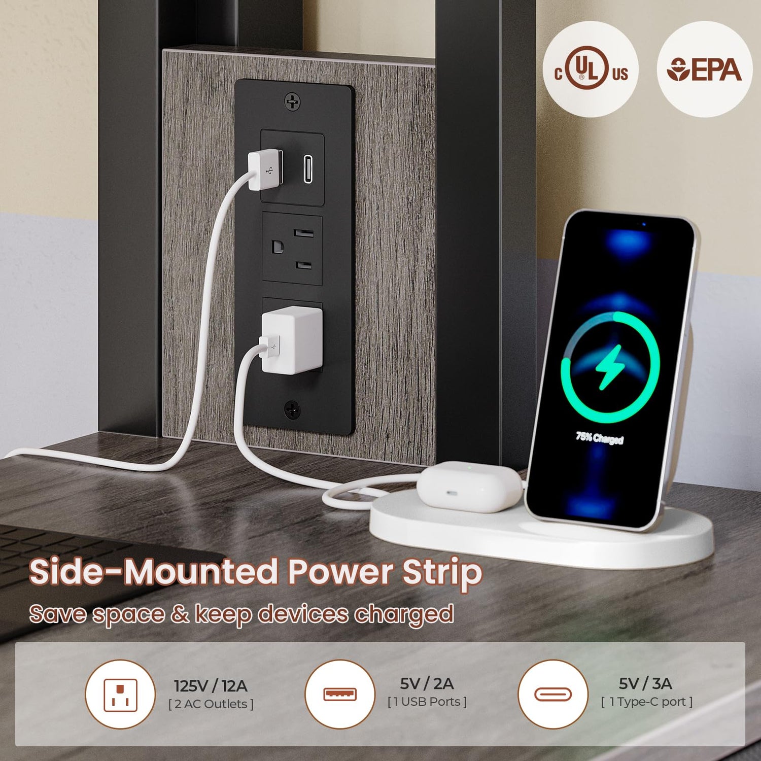 - 【Built-in Power Outlet for Hassle-Free Use】No more tangled cords! The desk side includes a vertical power strip with 2 AC outlets(for laptop), 1 USB and 1 Type-C port(fast-charge phones/tablets). Keeps devices powered without cluttering the desk—ideal for homework, gaming, or late-night reading