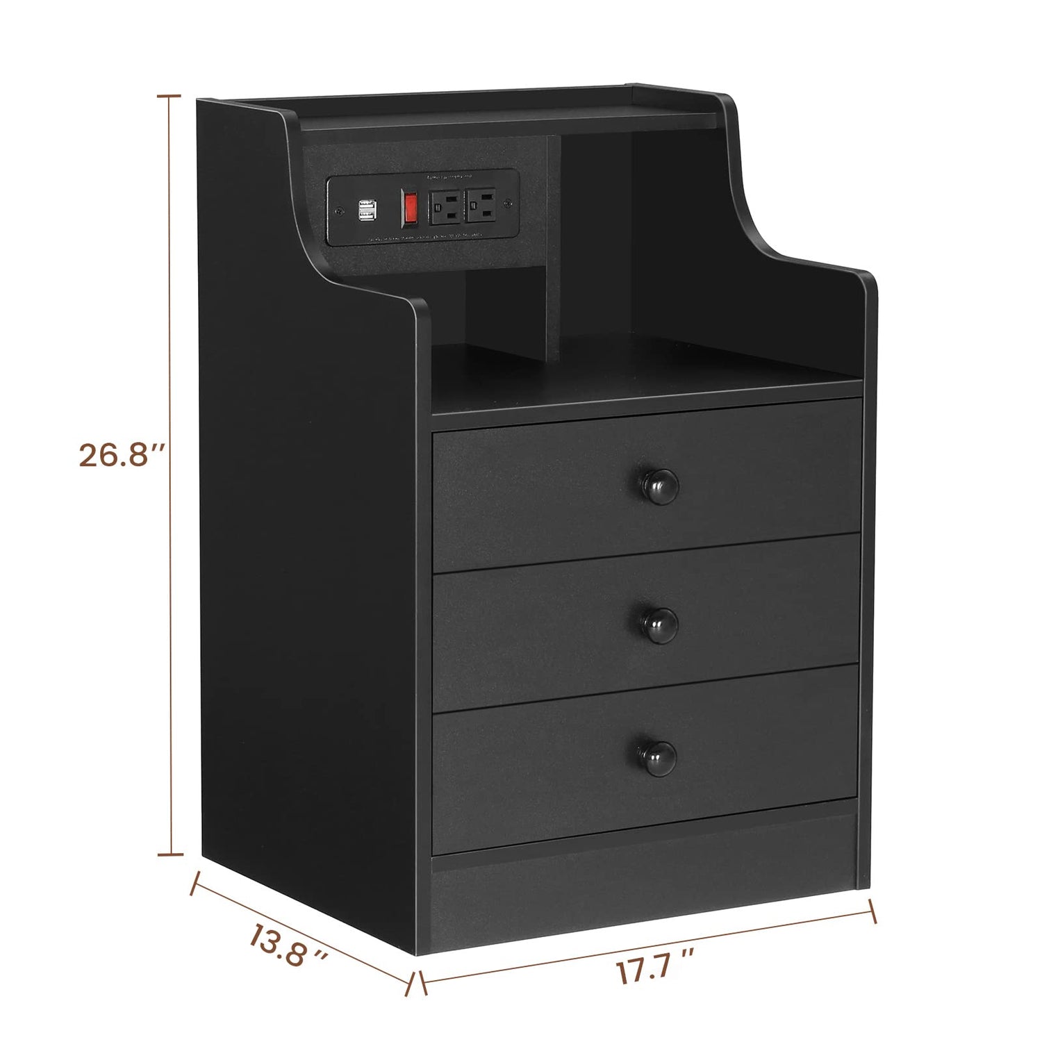 - NIGHT STAND WITH CHARGING STATION:2 Standard Plug Outlets & 2 USB Ports port allows you to charge mobile devices such as cell phone, tablet etc.The charging station also includes a on-off switch,which strengthens the security.