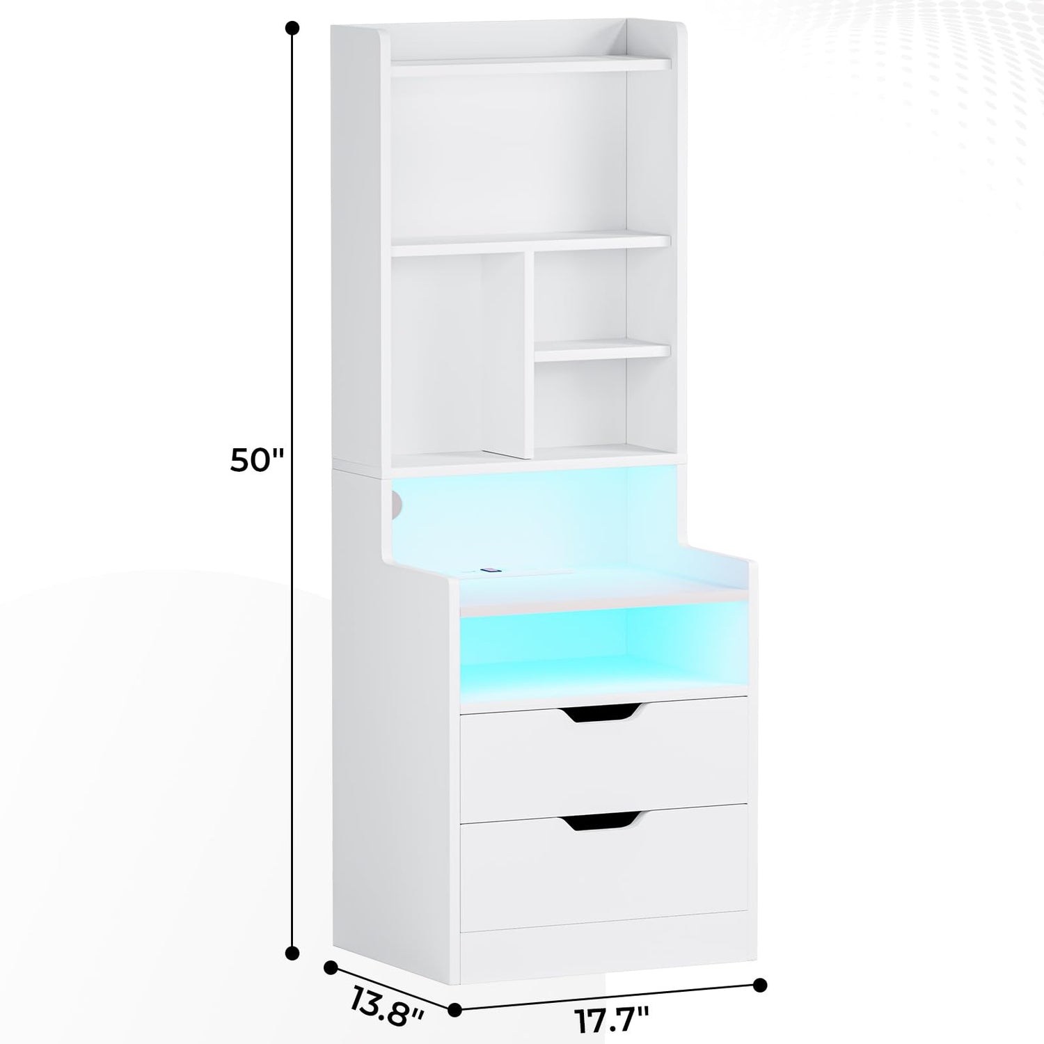 Modern LED Tall Nightstand Set of 2 with Charging Station and Storage, White