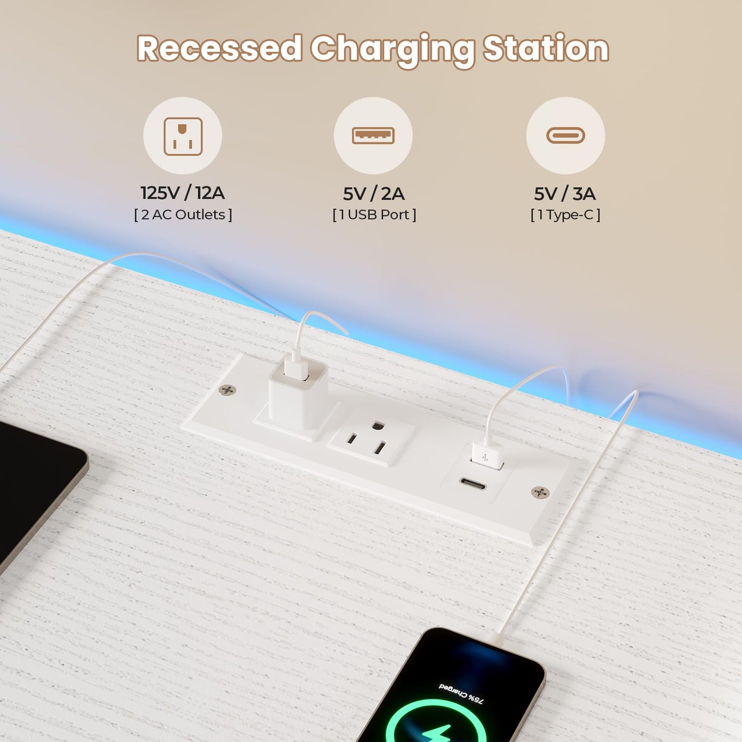 - 【TV Stand with Charging Station】Tired of tangled wires? Our TV entertainment center comes with 2 AC outlets & 1 USB port & 1 Type-C, turning it into a charging hub for your TV, Wi-Fi router, and gaming gear. Keep everything organized on the open shelf, maintaining a clutter-free TV console table