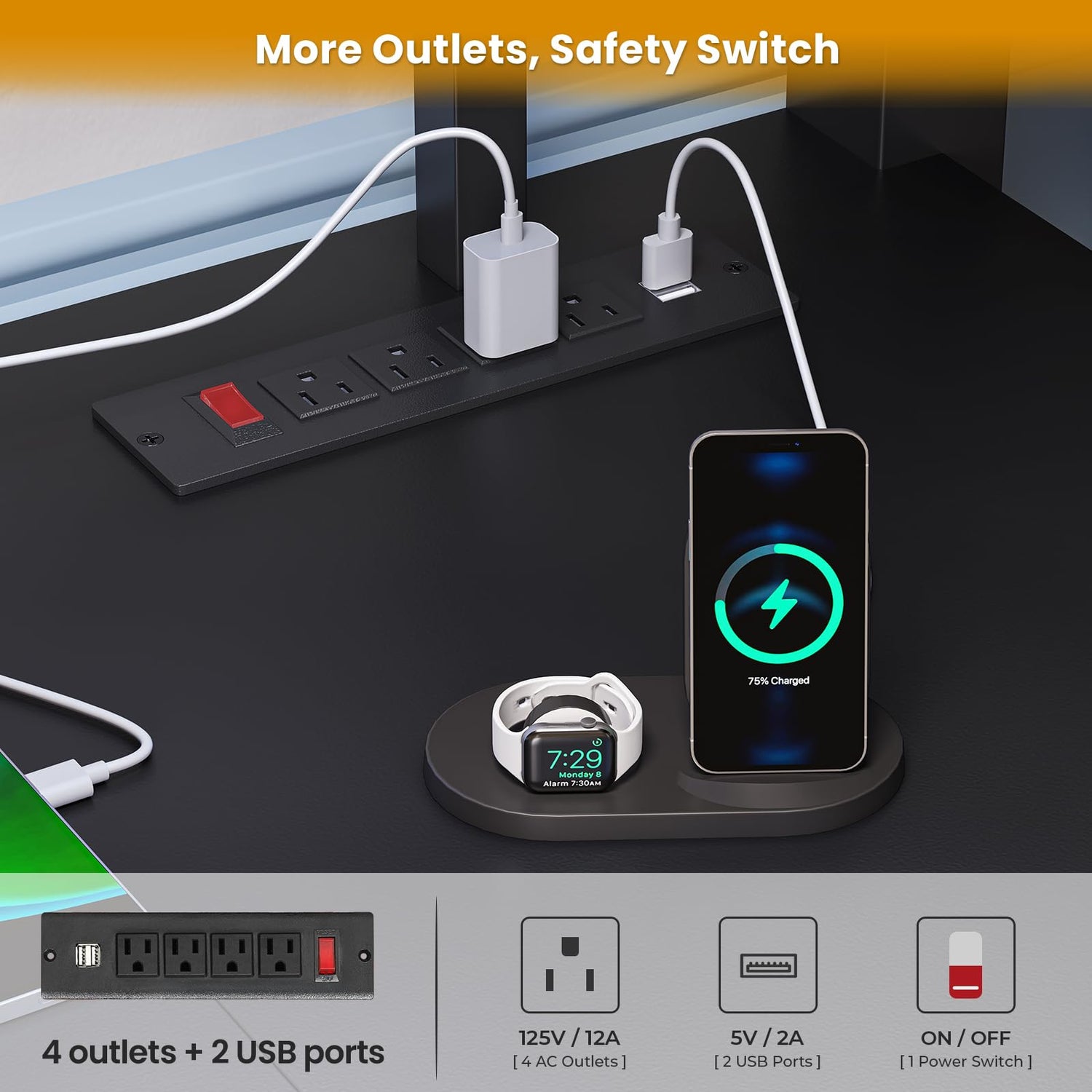 - 【All-in-One Power Hub with Safety Switch】Why it’s better? 4 sockets and 2 USB ports, that's twice the outlets of other loft bed desks—game controllers, laptops, and phone chargers can all live happily together. Ours specially includes an integrated safety switch to prevent electrical hazards