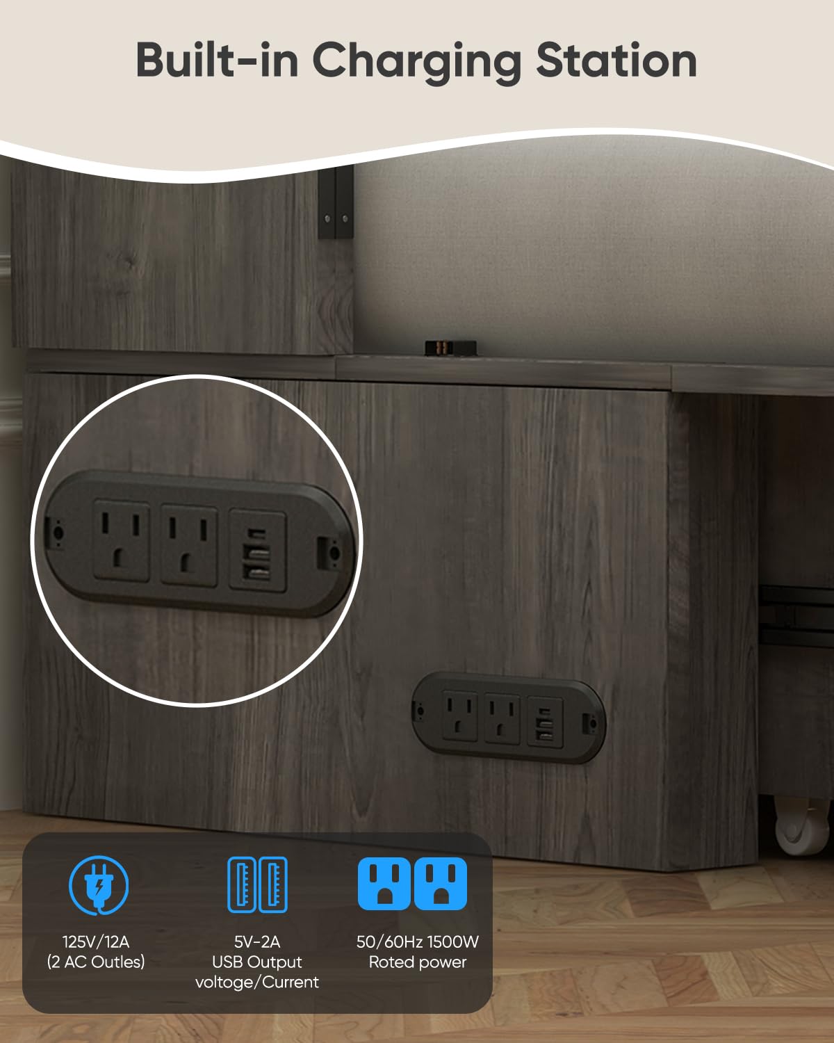 - 【Built-In Charging Station】Designed for ultimate convenience, this hideaway bed comes with 2 AC outlets and 2 USB ports. Charge your phone, laptop, or tablet right from the comfort of your lounging spot — perfect for movie nights or remote work sessions!