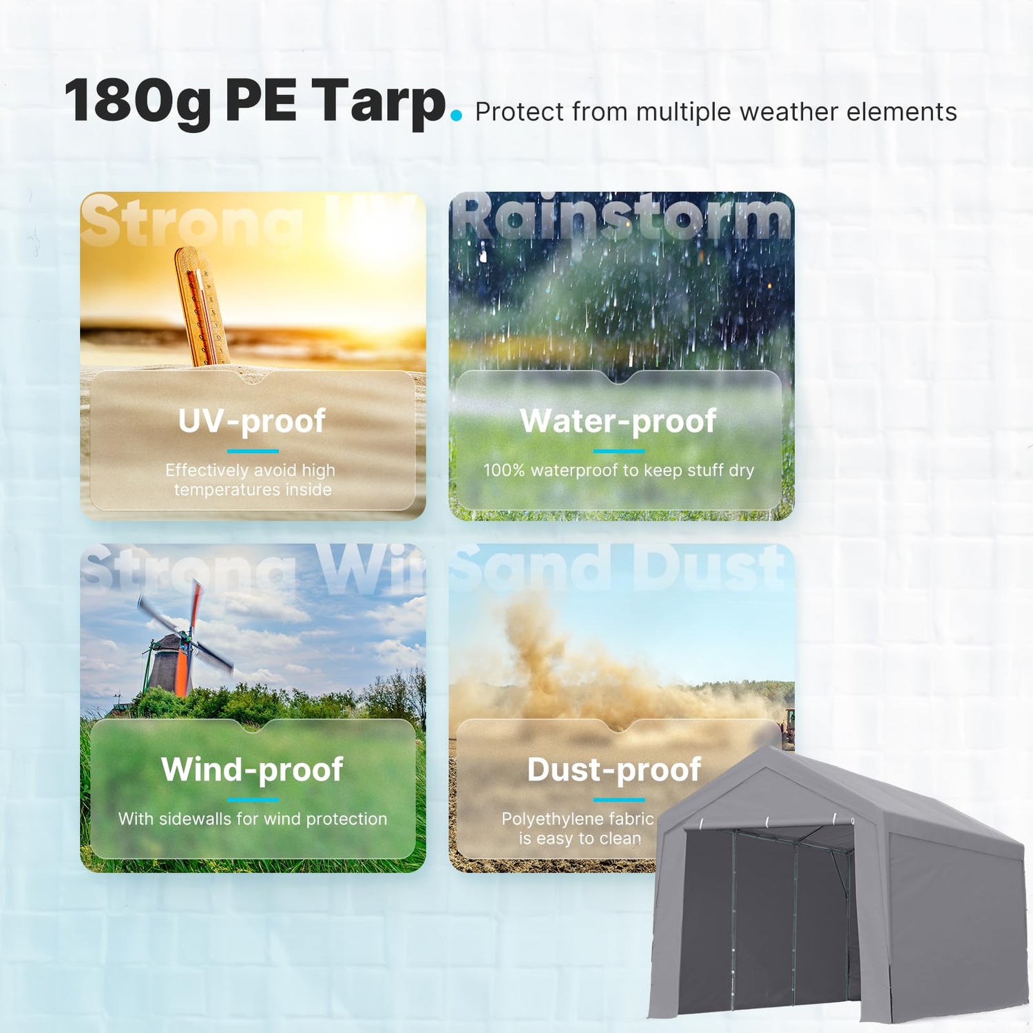 - 【Removable Sidewalls and Doors】- This carport shelter has 2 removable sidewalls and two removable doors with zippers. You can roll the doors up or down when needed. You can also remove all the sidewalls and doors, only leave the canopy cover on for outdoor activities.