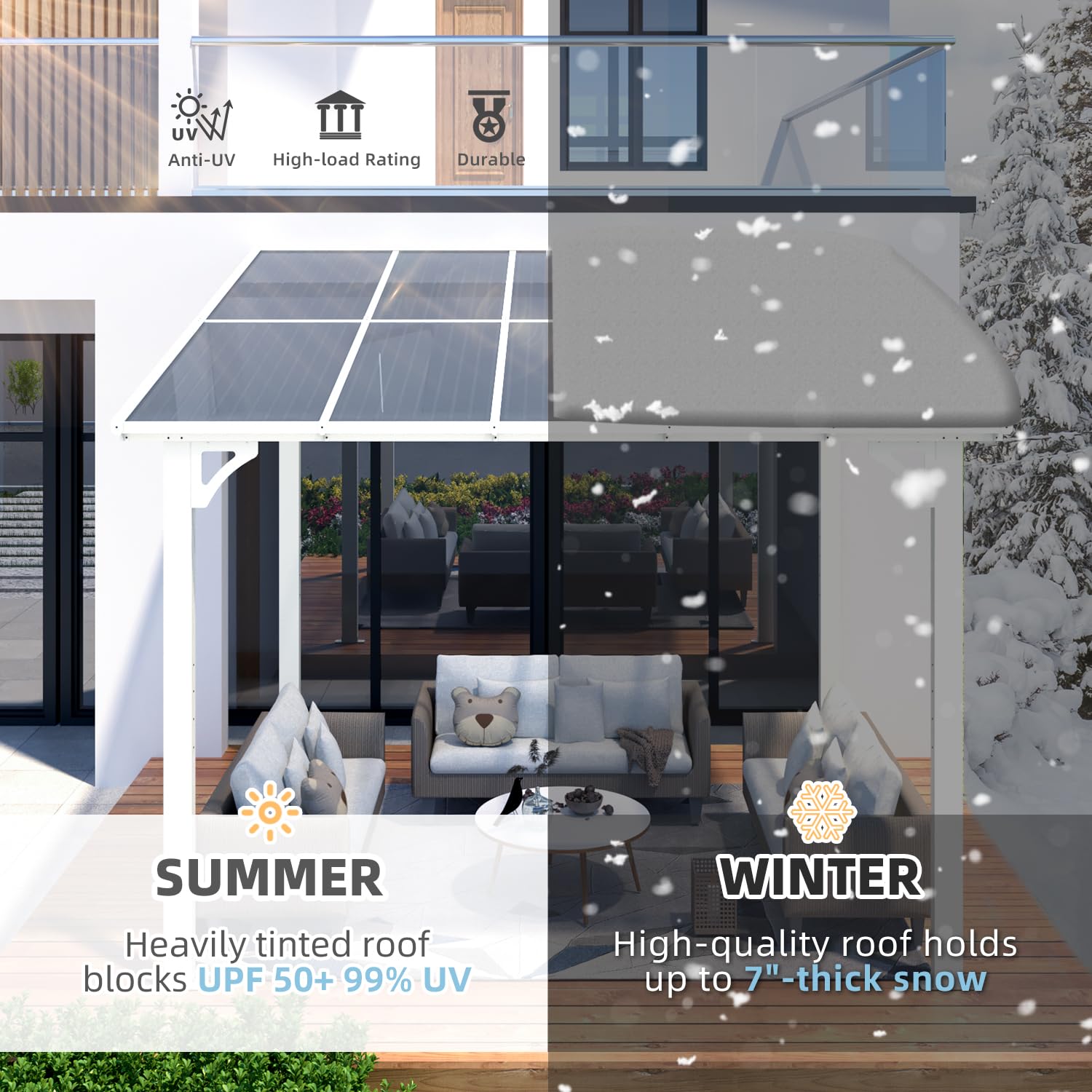- Durability and Stability: Rigorous static pressure tests prove it withstands 6 lbs per Sq.Ft, about 7" of heavy snow, instilling confidence in facing hail and blizzard conditions in Denver or Minnesota. Unlike traditional freestanding gazebos, it easily attaches to the wall with provided accessories, confidently withstanding winds of around 50 Mph once securely fixed and stabilized on the ground.