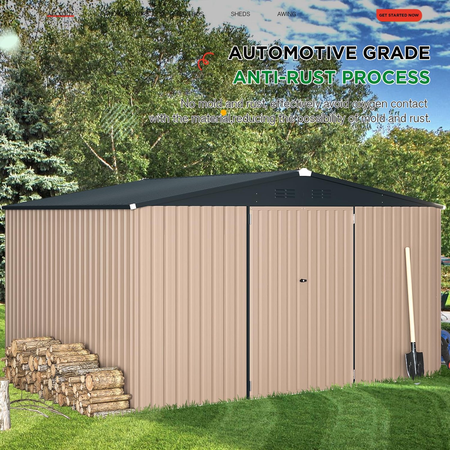 AECOJOY 12' x 10' Metal Storage Shed for Ourdoor, Extra Large Steel Yard Shed (116 Sq.Ft Land) with Design of Lockable Doors, Utility and Tool Storage for Garden, Backyard, Patio, Outside use