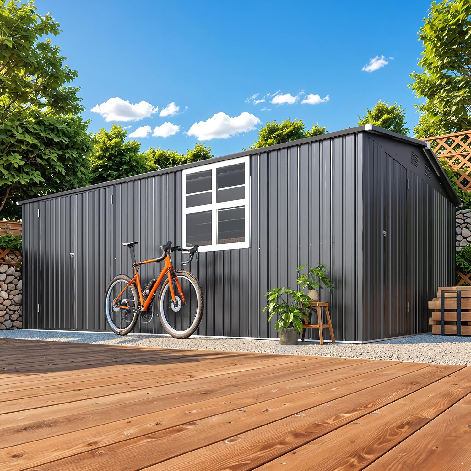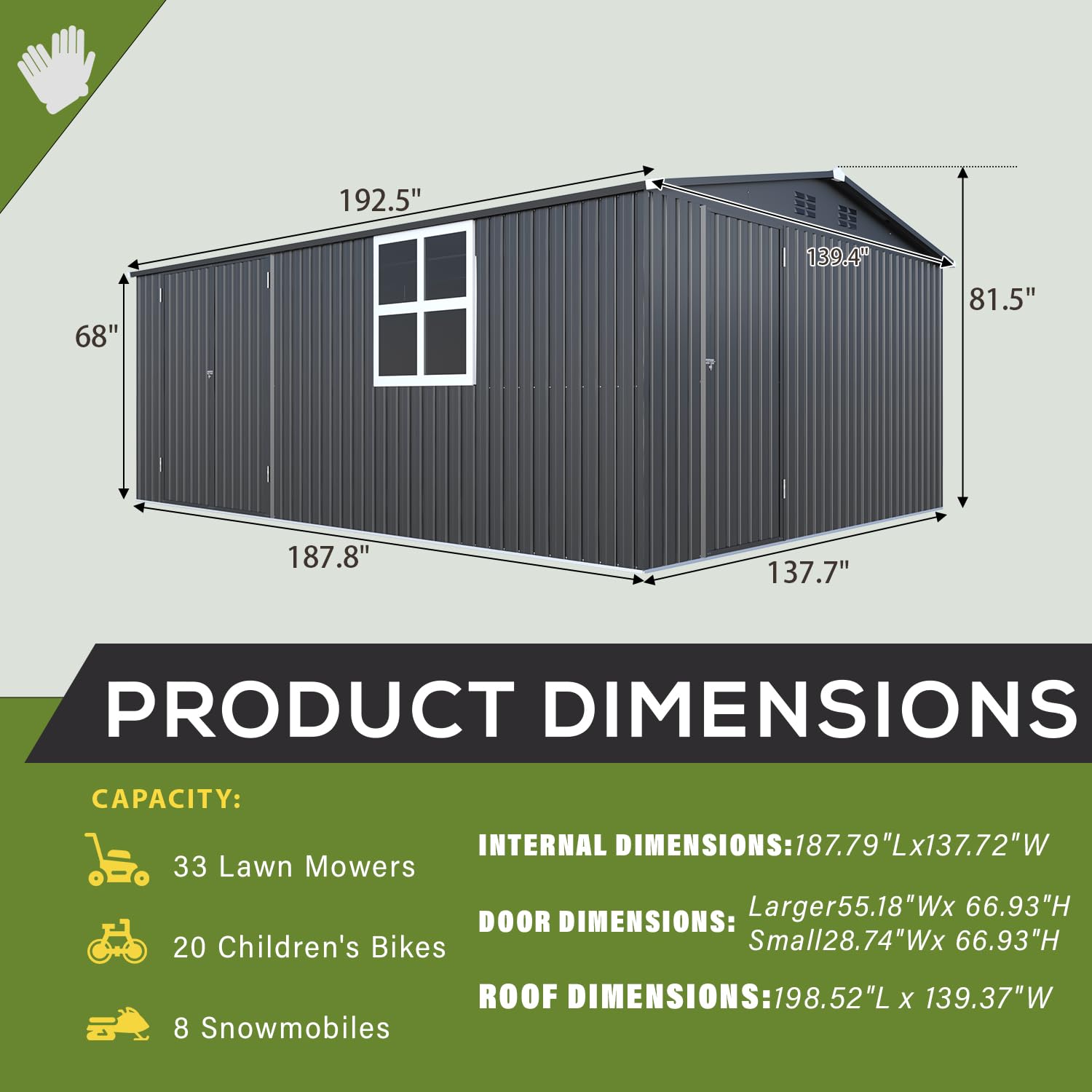 AECOJOY 16' x 12' Outdoor Storage Shed, Large Metal Sheds & Outdoor Storage Clearance 12x16 with Windows, Steel Backyard Shed, Utility Tool Storage for Garden, Patio, Outside use in Dark Grey