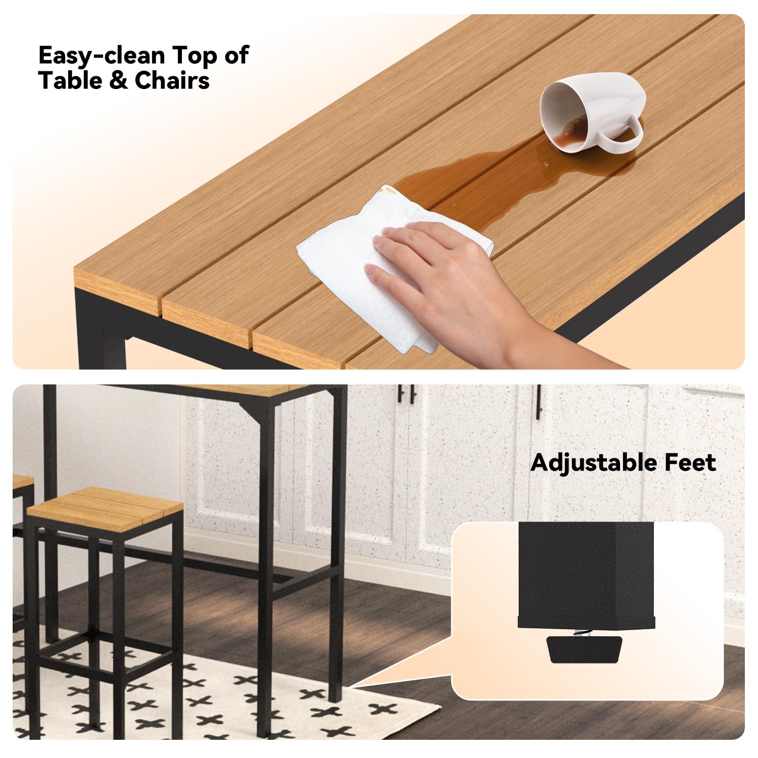- Easy to Maintain:This patio bar table and chair set features a wood-plastic composite surface of table and chairs that is easy to clean and maintain