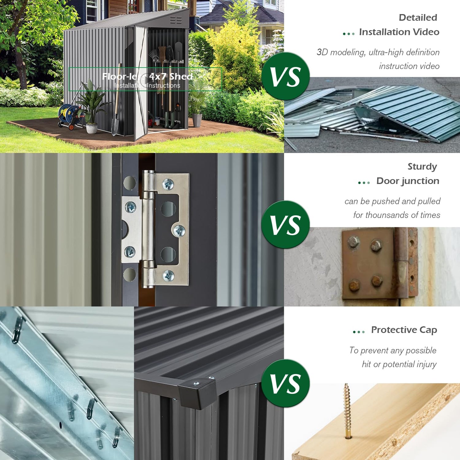 - Robust and Durable: Enhanced metal plates increase the shed's weight to 143 pounds, surpassing cheaper alternatives and significantly reinforcing stability. It withstands severe weather conditions with an impressive wind resistance of approximately 70 mph.