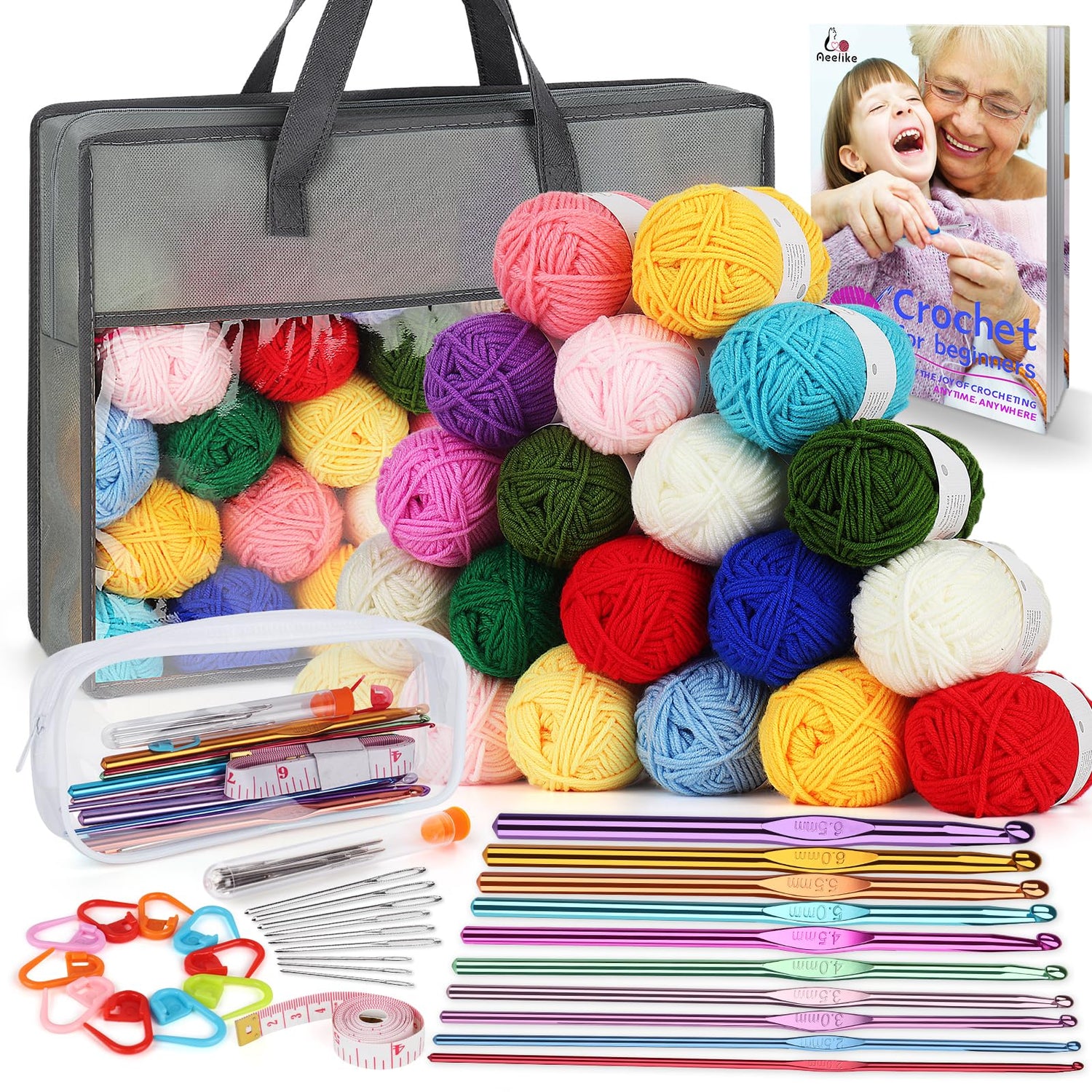 Aeelike Yarn Kit, 1093 Yards Crochet Yarn for Crocheting Complete Knitting Kit for Beginners Professionals with Aluminum Crochet Hooks Detailed Instruction, Ideal Crochet Yarn Set/Gift