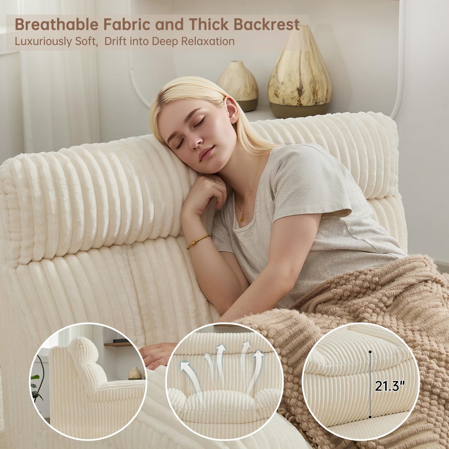 - 【Ergonomic Comfort Design】Scientifically contoured to support natural body curves, this boneless sofa couch features enhanced lumbar support and a high-density sponge filling for all-day comfort. The thick backrest and deep seat cradle your body, whether you're working, gaming, or napping. The combination of PP cotton and elastic foam offers a plush yet supportive feel, adapting to your posture for superior relaxation.