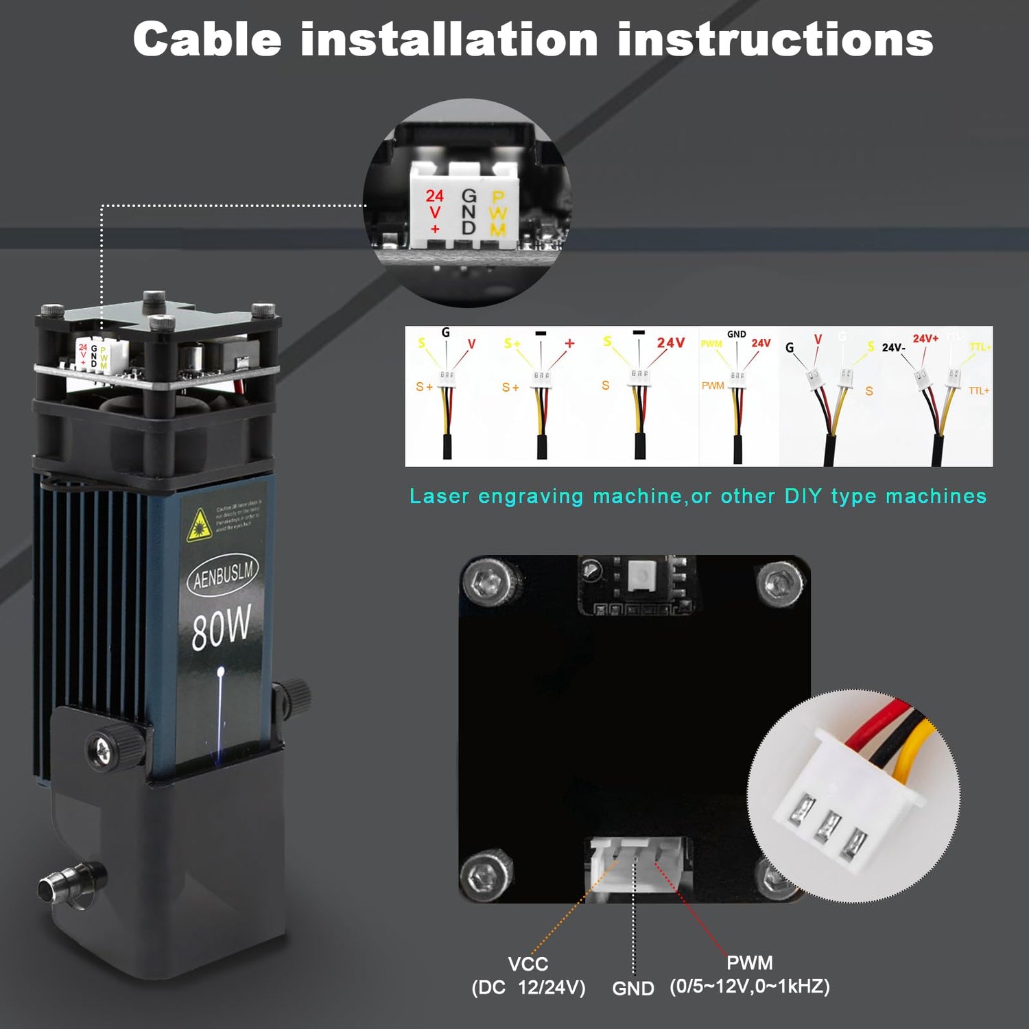 AENBUSLM 80W Laser Module,10W Output PowerLaser Engraving Cutting Module for Wood,Compressed Spot CNC Carving DIY Laser Master for Laser Cutter & Laser Engraver Machine - Laser Class:lV (24V)