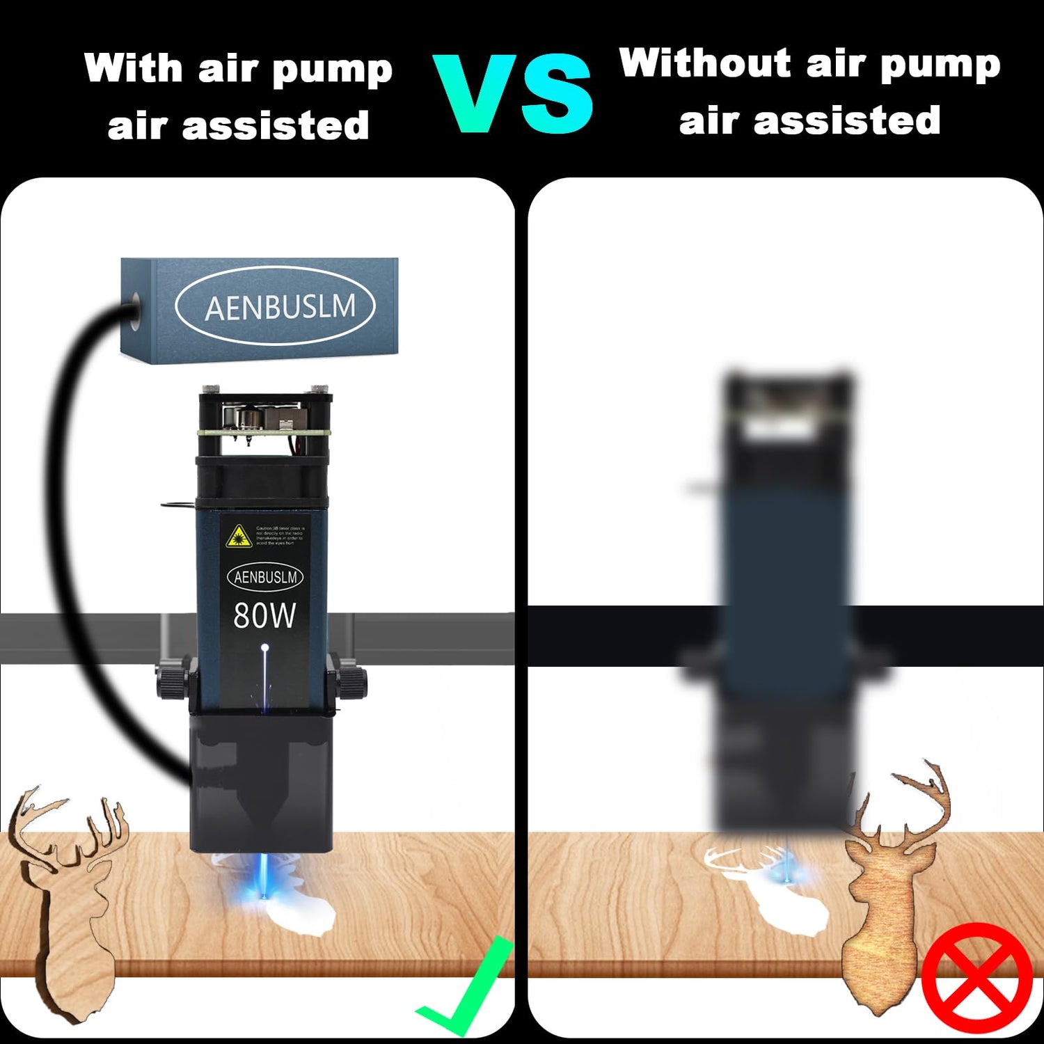 • 【PROFESSIONAL AIR ASSIST & HEAT DISSIPATION DESIGN】 - AENBUSLM 80W air assist laser modules can make material edges cleaner and clearer when cutting/engraving. It can increase laser cutter efficiency to save time and enjoy concise beauty (The package includes an Air Assit Kit). This laser cutter module built-in fan cooling system. Fan Speed 12000 rpm. Only 300~400 MW power decrease with 100% power output in 30 min. Original diode, high quality, lifetime up to 20,000 hours.