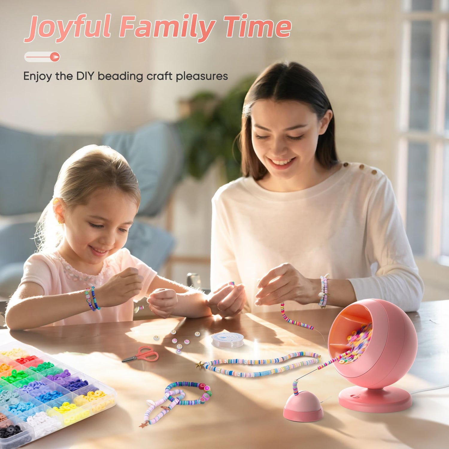 Aenebe Bead Spinner for Jewelry Making, 4500 PCS Clay Beads for Necklaces and Bracelets, Bracelet Spinner with 2 PCS Needles, DIY Arts and Crafts Birthday Gifts (Pink)