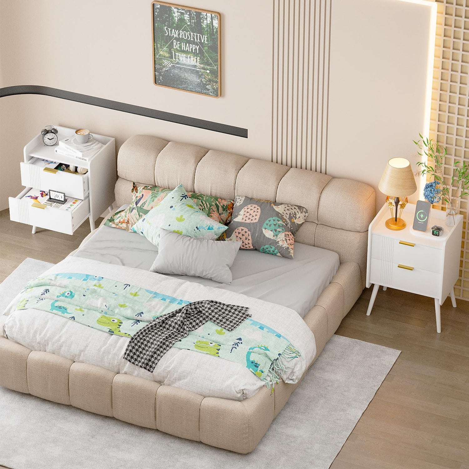 - 【LARGE CAPACITY STORAGE】Our night table with 2 drawer and an open shelf which can make full use of space to meet your daily storage needs.You can place your books, clothes, decorations and so on. The function of divided storage makes your room more beautiful, concise, and organized.