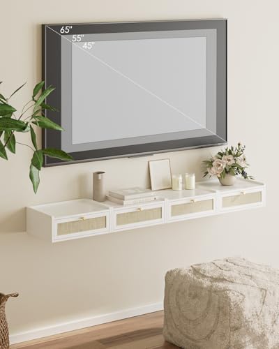 - Space saving: The small floating bedside table saves you space under the bedside table. The size is 13.39 "D x 17.32" W x 7.09 "H, which can be adjusted according to the height of your bed, allowing you to reach out and turn on the desk lamp. You can place anything under the rattan night stand, even a sweeping machine, without worrying about moving the cabinet or scratching the floor. It will not accumulate dust and is easy to clean.