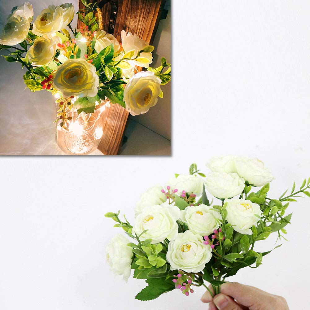 - PERFECT COMBINATION: 2 pcs mason jar wall decor, 2pcs rustic wood board, 2 pcs LED fairy lights (batteries not included), 2pcs remote controller, and 2 bunches of camellia with green leaves. This beautiful and rustic wall decor emits a magical warm glow, will fully capture your attention.