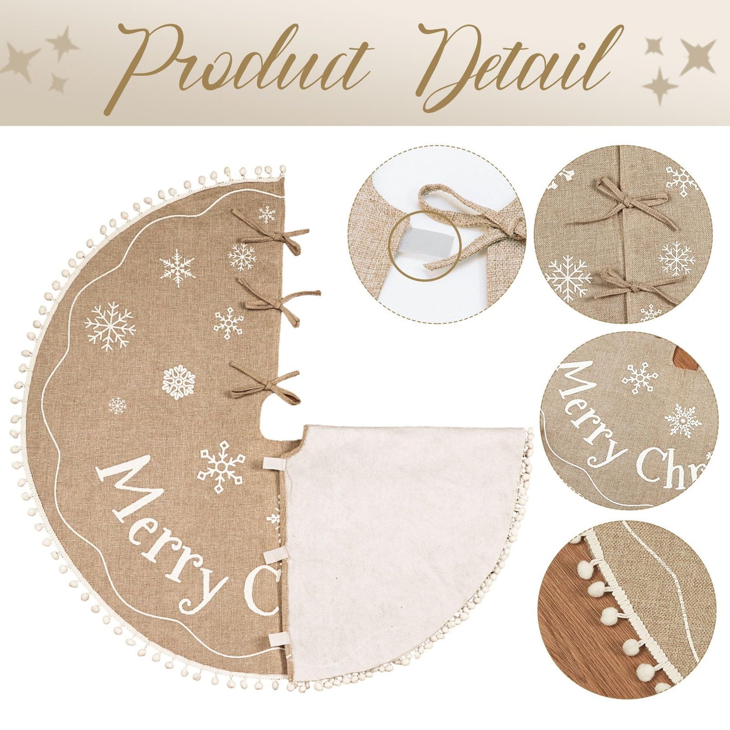 AerWo Christmas Tree Skirt 48 Inches, Burlap Tree Skirt Printed with White Snowflake and Merry Christmas Decor, Brown Tree Skirt for Christmas Decorations New Year Holiday Party Supply Indoor Outdoor