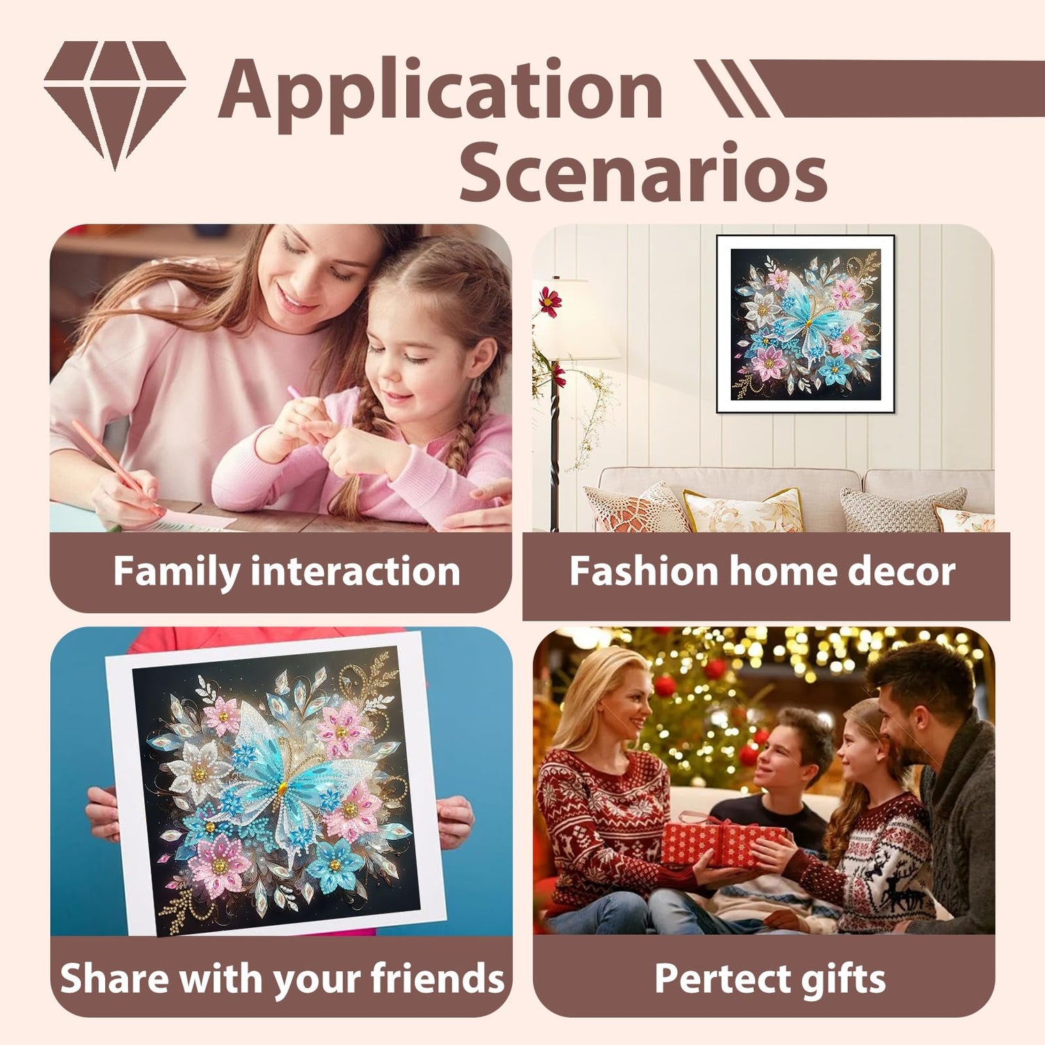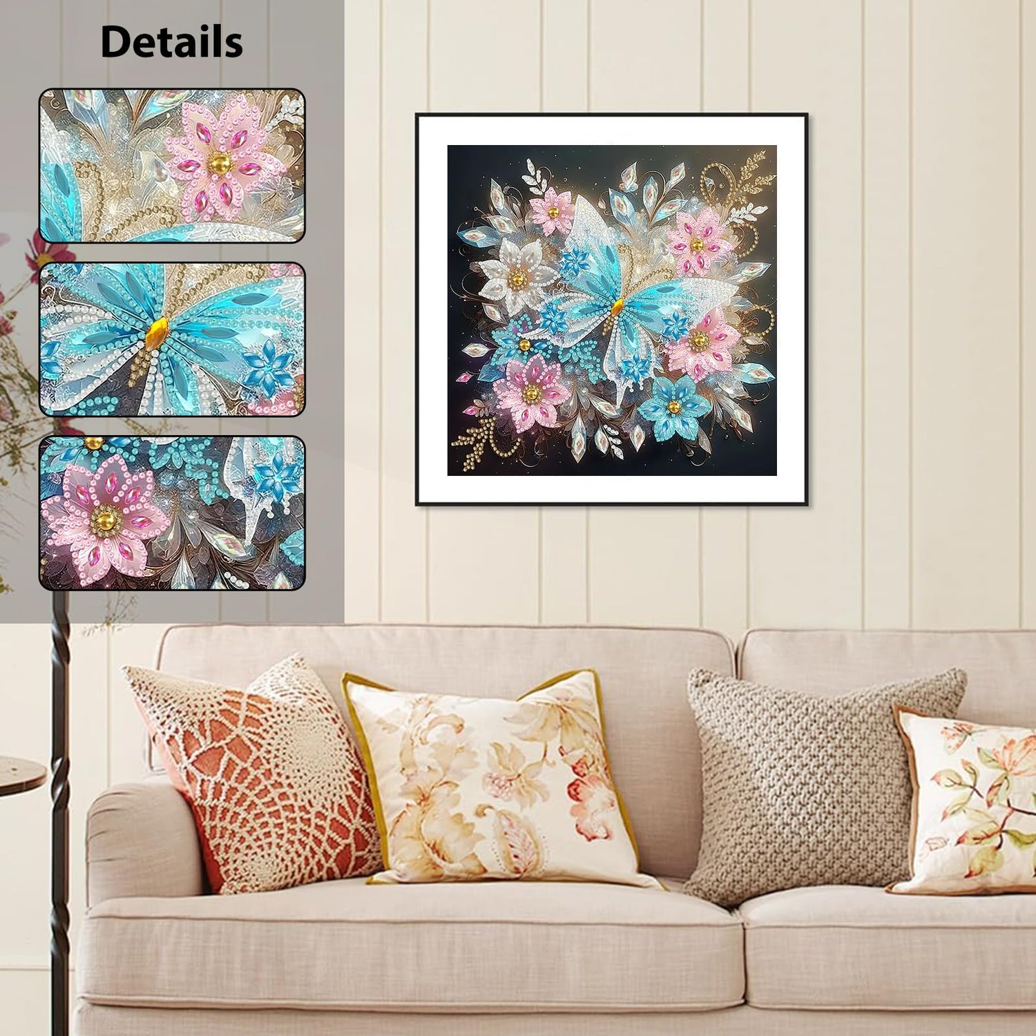 Aestalrcus Butterfly Diamond Painting Kits for Adults, Butterfly Flowers Special Shape Diamond Art Kits for Adults, DIY Gem Art Crystal Rhinestones for Gift Home Wall Decor 12x12 Inch