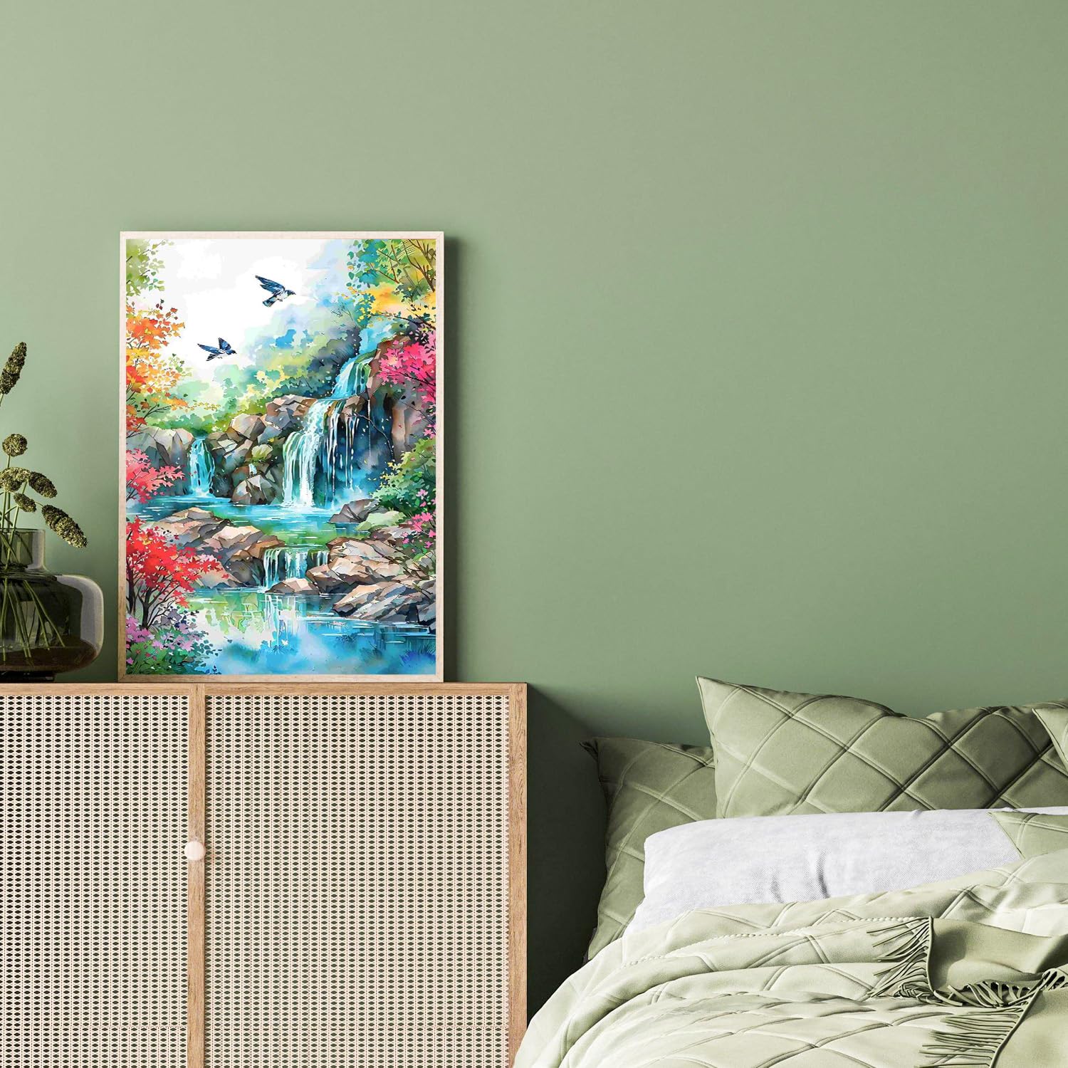Aestalrcus Landscape Paint by Numbers for Adults - Waterfall Paint by Numbers for Adults with Brushes, Art Crafts Canvas for Home Decoration 16 x 20 Inch