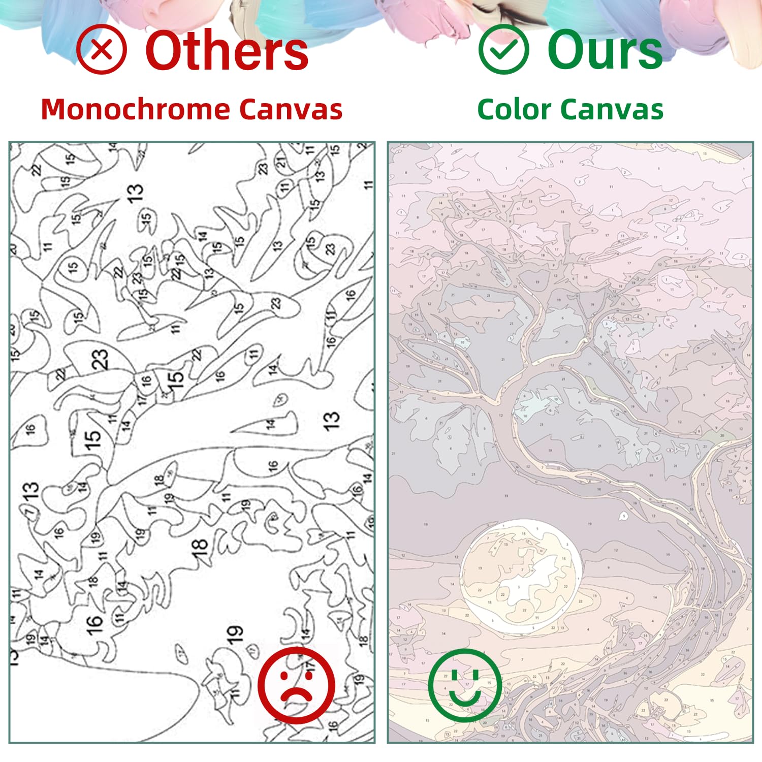 - Quality Canvas and Acrylic Paint: Our paint by number for adults comes with a smooth and clean canvas with clear outlines for easy identification. The environmentally friendly acrylic paints provide full bright color and are quick-drying with strong coverage.