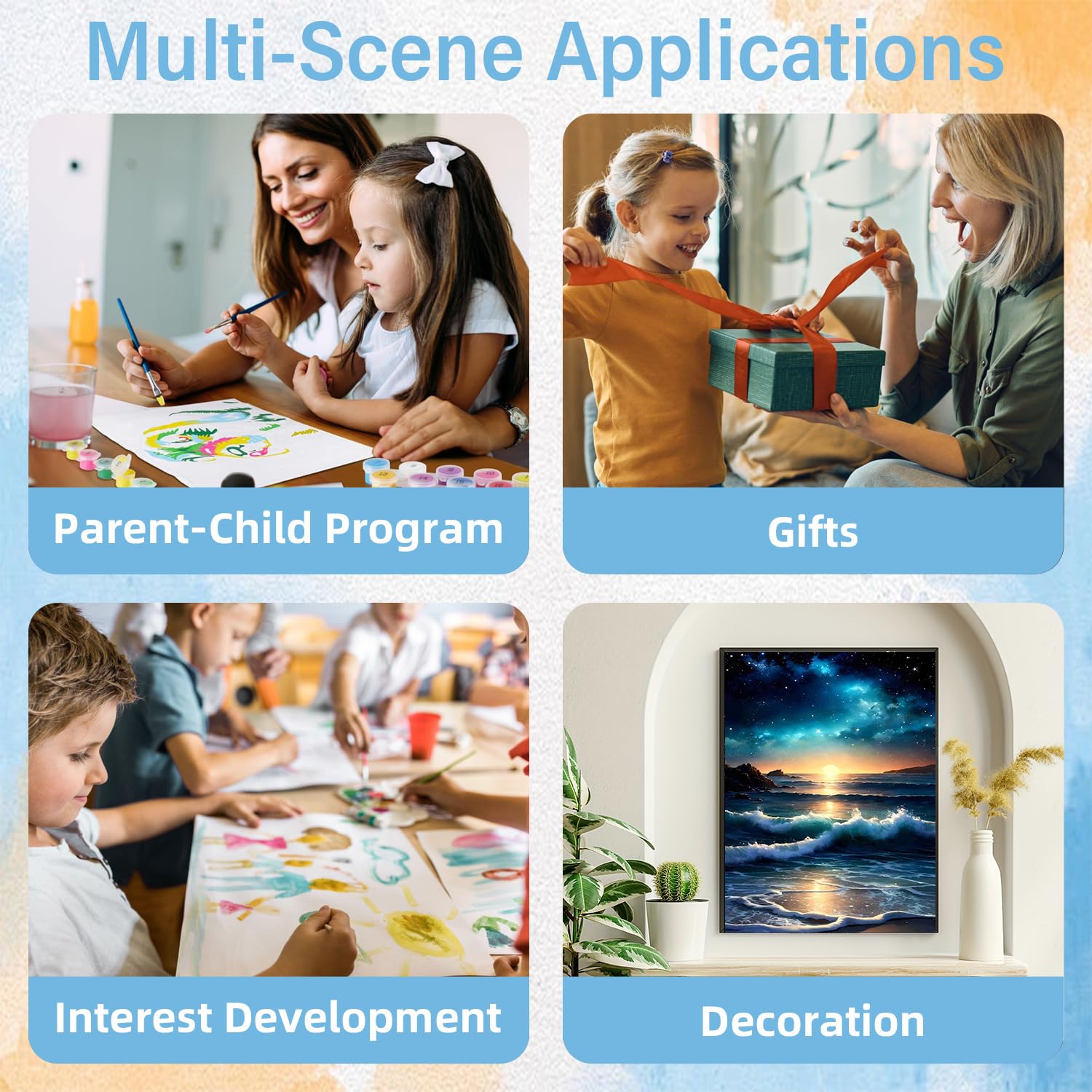 - Beautiful Thoughts: Surprise your loved ones with these paint by numbers for adults adn kids. Paint by numbers kits makes for a great gift for birthdays, Christmas, New Year's Day, Thanksgiving Day, anniversaries, etc. Kids can develop their creativity while adults release their stress.