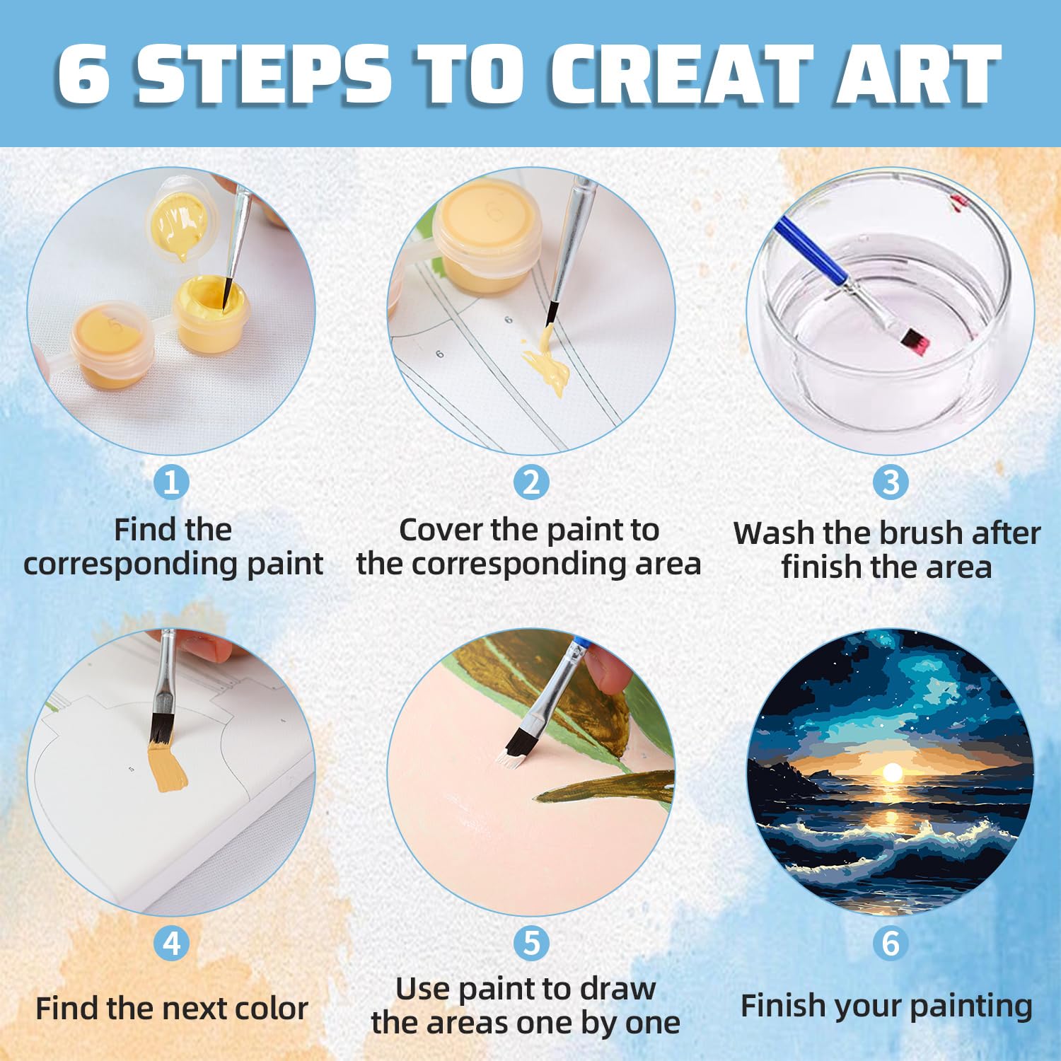 - Quality Canvas and Acrylic Paint: Our paint by number for adults comes with a smooth and clean canvas with clear outlines for easy identification. The environmentally friendly acrylic paints provide full bright color and are quick-drying with strong coverage.