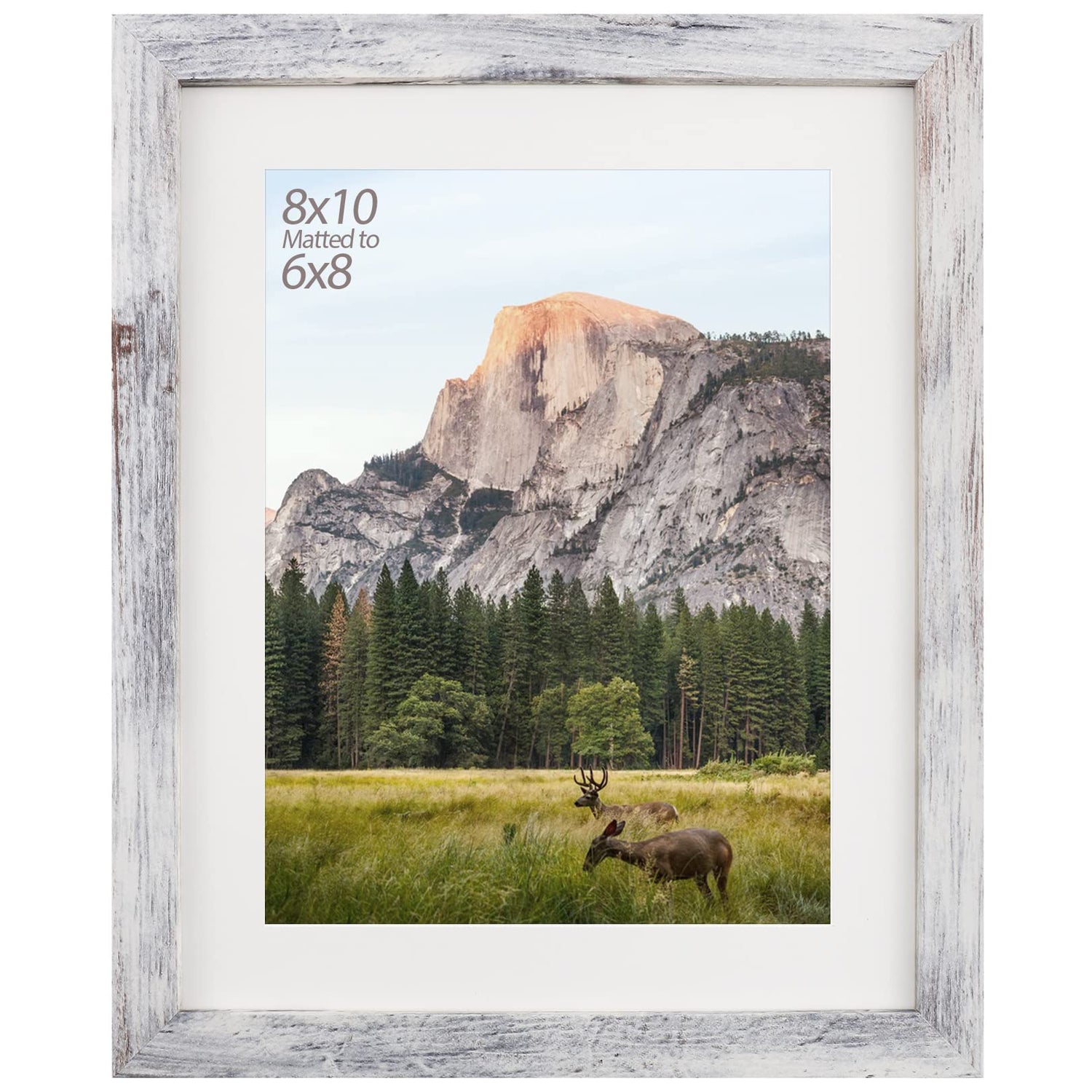AEVETE 8x10 Picture Frame White Distressed Display Photos 6x8 with Mat or 8x10 without Mat for Wall Tabletop