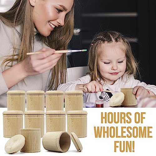 AEVVV Paintable Wooden Box with Lid 2''x2.8'' 10 pcs Storage Spice Containers Blank Trinket Box Jewelry Box Decorative Decoupage Boxes DIY Wood Ring