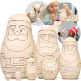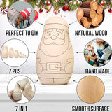 AEVVV Unfinished Christmas Nesting Dolls Blank Set 7 pcs - Christmas Crafts to Paint Your Own Matryoshka Santa Claus - Blank Russian Nesting Dolls