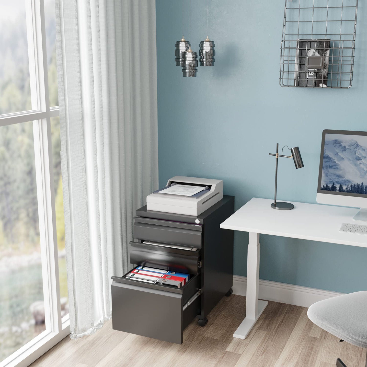 - STURDY STEEL FRAME▶▶We've used solid steel to engineer our 3-drawer mobile file cabinet. It is durable, resistant to dents and warping, and powder-coated with a finish that prevents scratches and rust. High-quality materials ensure the filing cabinet has sufficient strength and stability, which is suitable for use in multiple scenarios.
