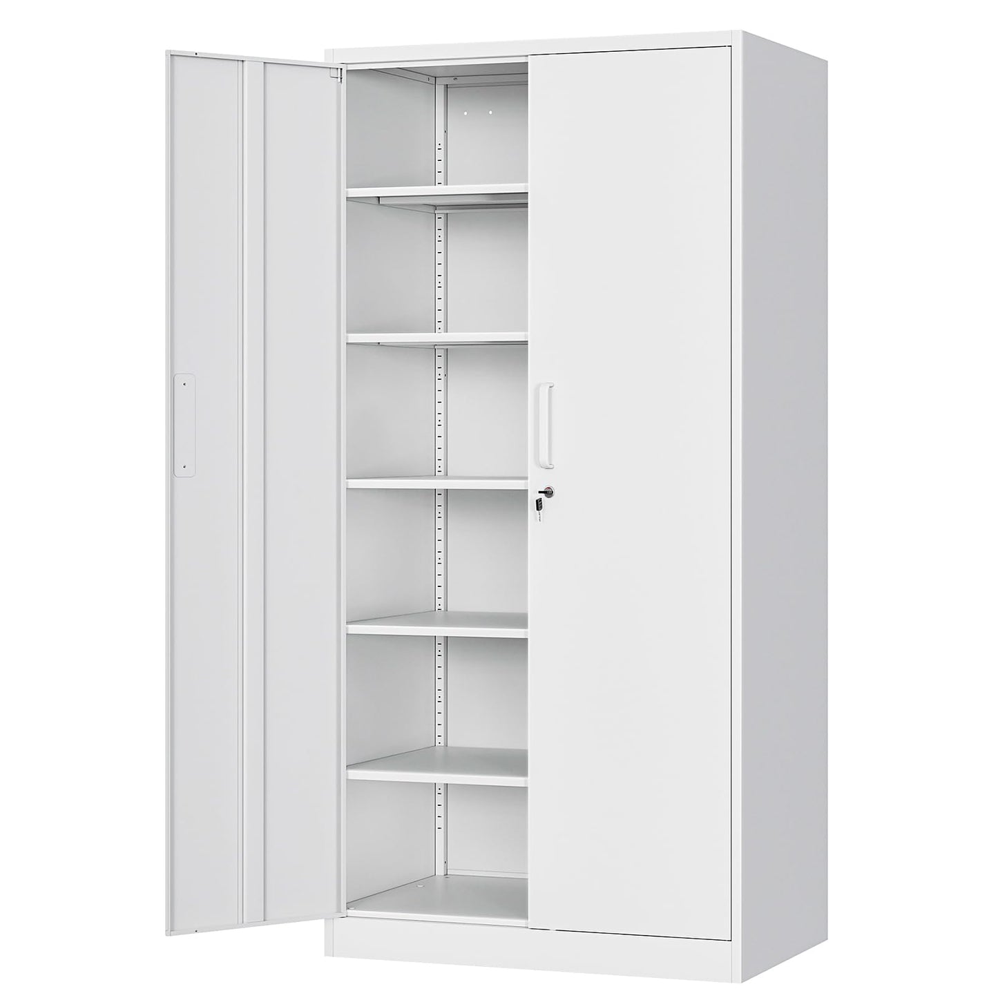 - 【Adjustable Shelves & Large Capacity】:AFAIF white metal cabinets is designed with 5 moveable and adjustable shelves allowing this lockable garage organization cabinet to store all kinds of items, you can arrange your storage space more freely and don't have to worry about the height and size of your stored items! Each shelf can hold up to 120 lbs, total load capacity is 600 lbs.