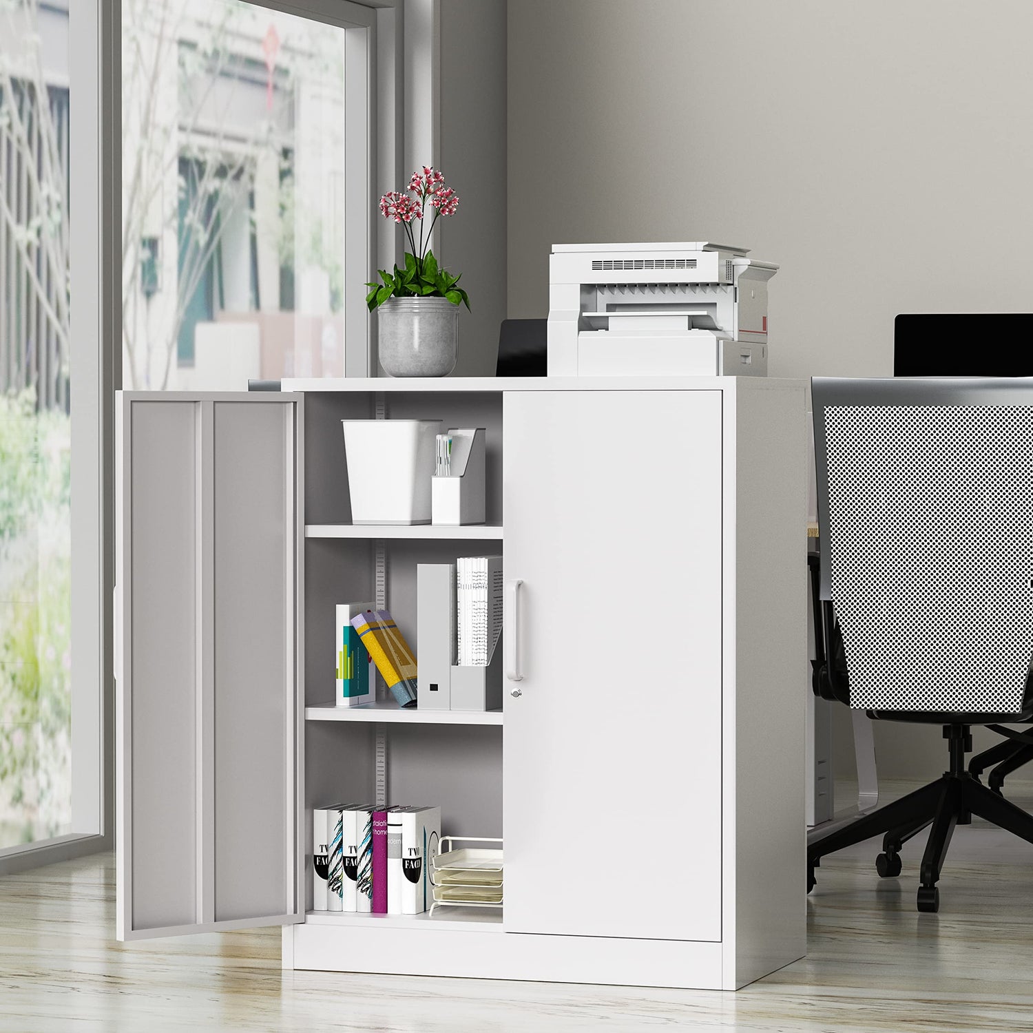 AFAIF Metal Storage Cabinets with Locking Doors, 36 inch Lockable Steel Office Cabinet with Adjustable Shelves, Small Short Garage Caninet, White Locked Tool Caninets for Home, Office, Garage, Hallway