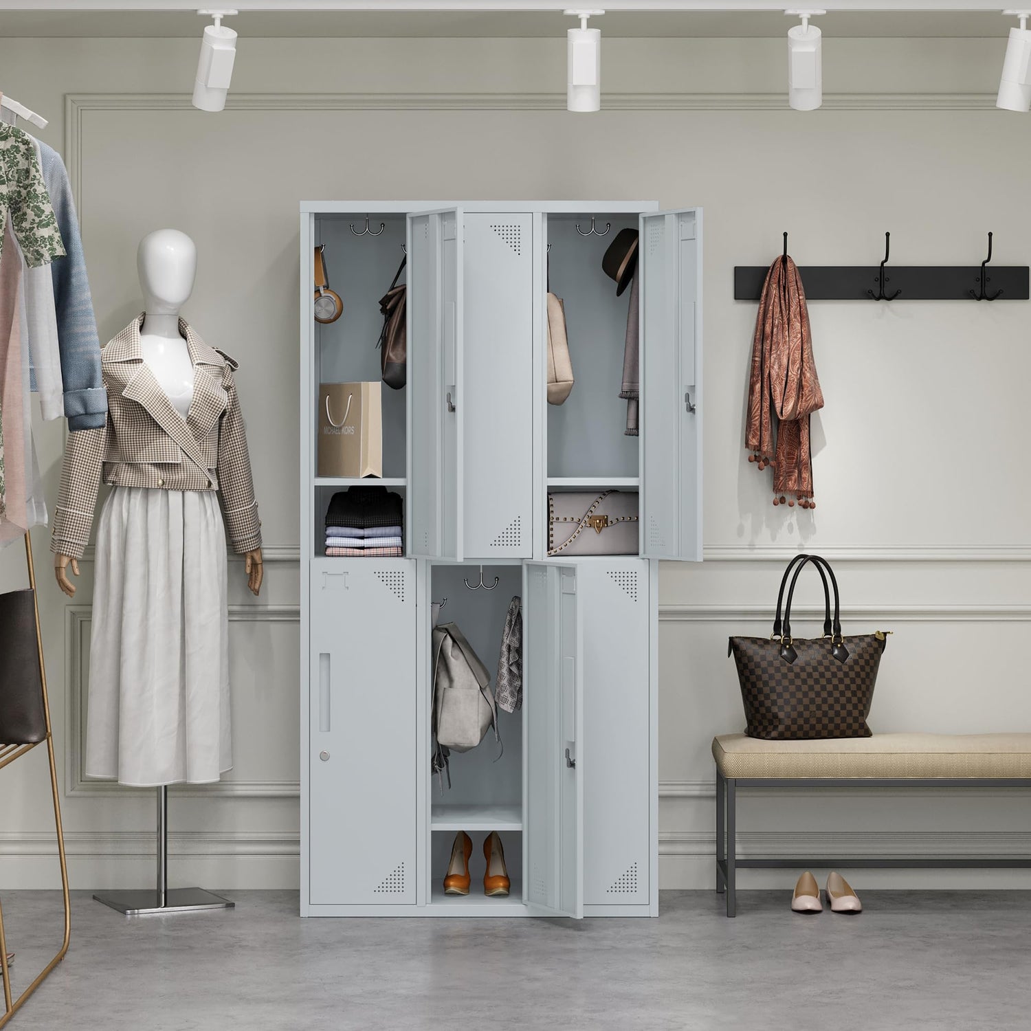 - ✅Privacy Security & Ventilation Design--The Metal storage locker comes with locks for the protection of personal belongings, and each separate compartment has 1 lock. The locker also has a vented design to keep the air inside the cabinet flowing properly, avoiding odors and ensuring the cabinet is easy to clean.