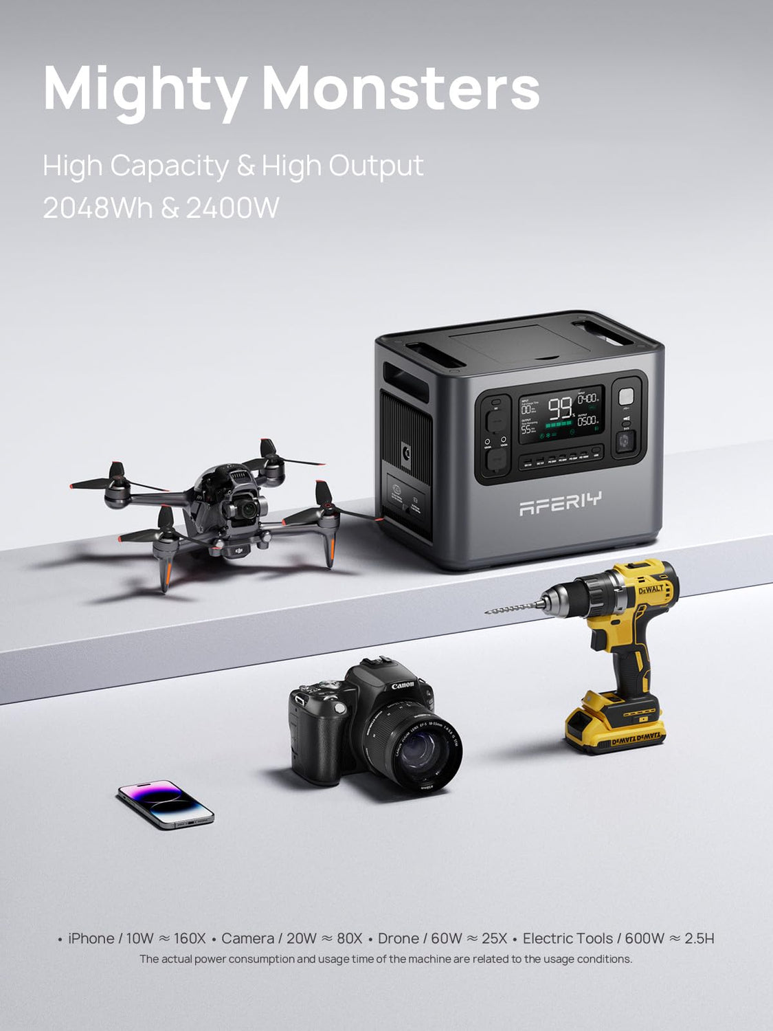 AFERIY Portable Power Station 2400W / 2048Wh Power Station LiFePO4 Battery, Quick Charge in 1.5H, 6 AC Outlets, UPS, Solar Generator, Electric Generator for Home Camping Use