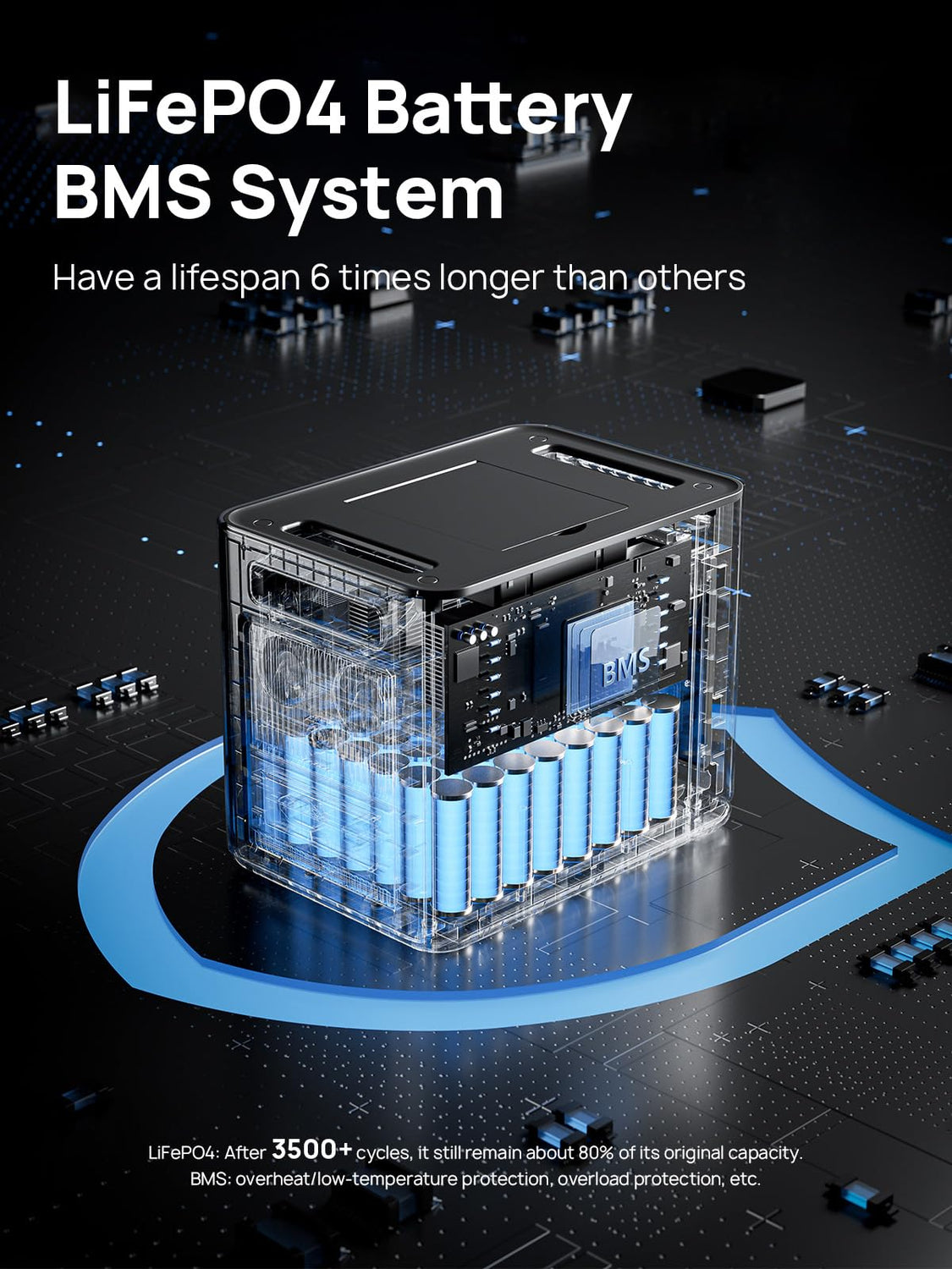 - 【 LiFePO4 & BMS Ultra Safe 】 This portable power station with international safety standards UL, CE, FCC, PSE, RoHS, and TELEC certifications. The safe, eco-friendly LiFePO4 battery and BMS tech offer multiple protections and more than 3500+ life cycles to the LiFePO4 power station, it is about 6 times more durable than ordinary batteries. The highest quality LiFePO4 battery, safer while being dense and smaller/lighter. It is 20% lighter than others, only 48.5 lb(22 kg ).