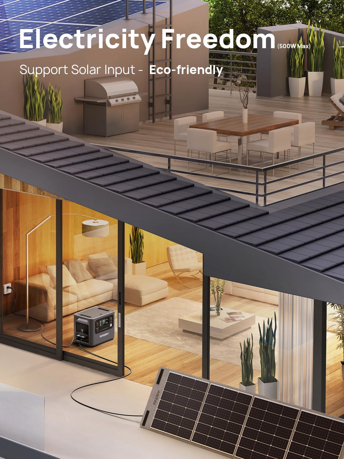 - 【 High Capacity & Reliable Sine Wave 】 AFERIY solar generator With a 2048Wh capacity and a powerful 2400W inverter(4000W Peak), can be used longer than traditional power banks and power most appliances. The pure sine wave two-way inverter delivers constant voltage while preventing device damage.