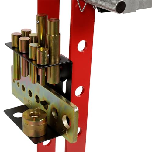 Details: This shop press is designed for straightening, bending, pressing, and stamping; The tool comes with a heavy duty cable winch system for effortless bed adjustment. Motor: The large liquid filled glycerin gauge accurately shows pressing force; In addition, the dual air motor operation helps and guides with the faster pressing process. Features: Made with a shatter resistant polycarbonate guard for added operator safety; This super duty, shop press includes a 2 piece press plate set and 10 piece pin and bearing press adapter set.