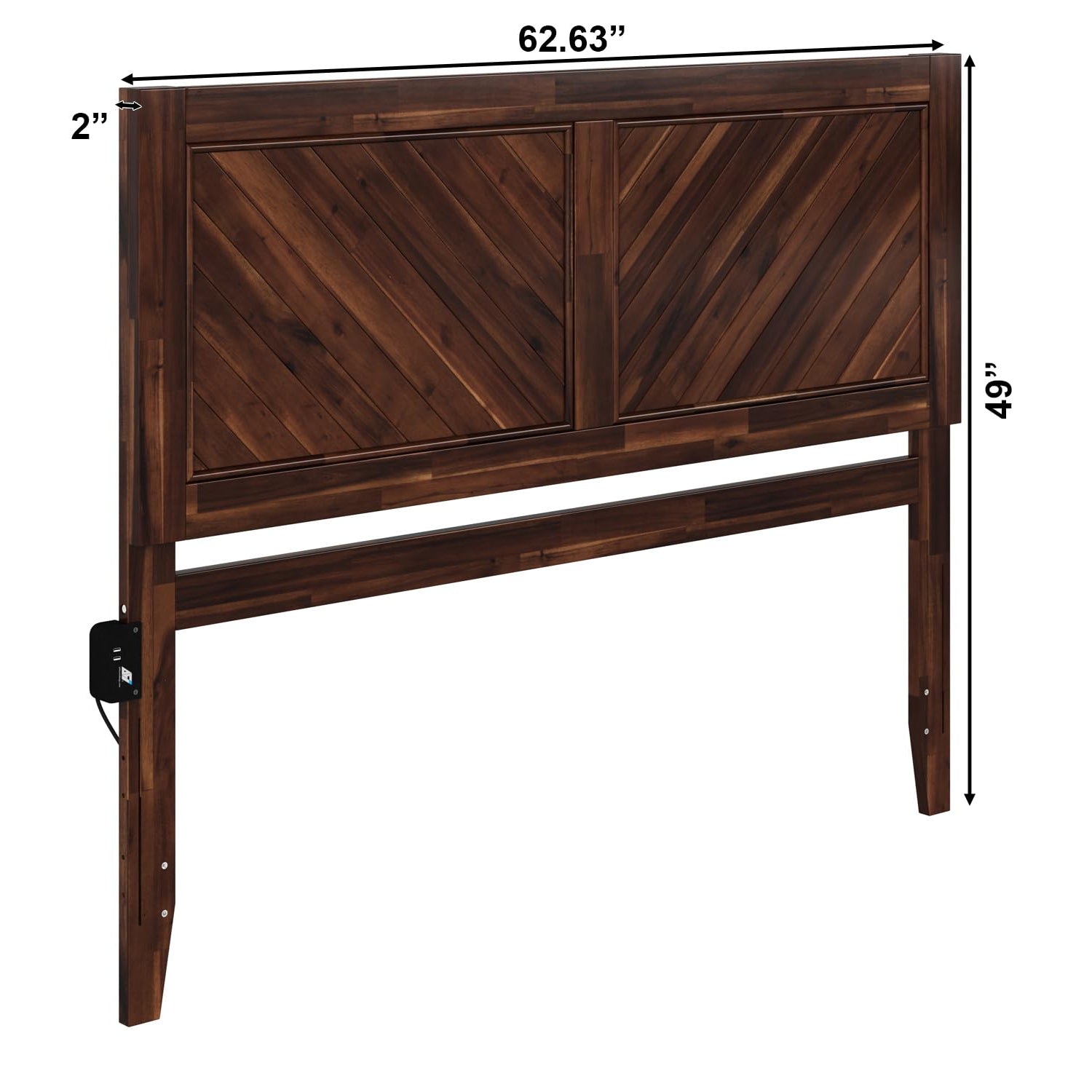 Details: Introducing The Canyon Wood Headboard: Where modern design meets natural elegance. Crafted meticulously with captivating chevron carvings, this wood headboard transforms your bedroom into a serene oasis. Available in pristine white, earthy walnut, or rustic Barnwood, it complements any decor and evokes a sense of calm sophistication. Whether you have a twin, twin xl, full, queen, or king-sized bed, the Canyon promises a perfect fit. Designed for modern living, it easily attaches to most standard metal bedframes that support a foundation or box spring and mattress. For the modern dweller, the Canyon comes equipped with an attachable USB charger, making those bedtime reads and morning routines more convenient than ever. Experience the union of form and function with the Canyon headboard – a statement piece for any contemporary home.
