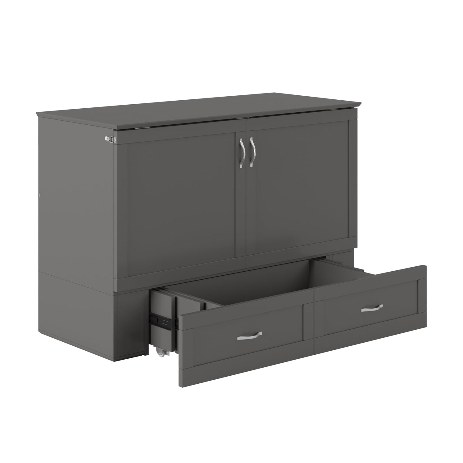 AFI Hamilton Full Murphy Bed Chest with Mattress, Storage, and Built-in Charger in Grey