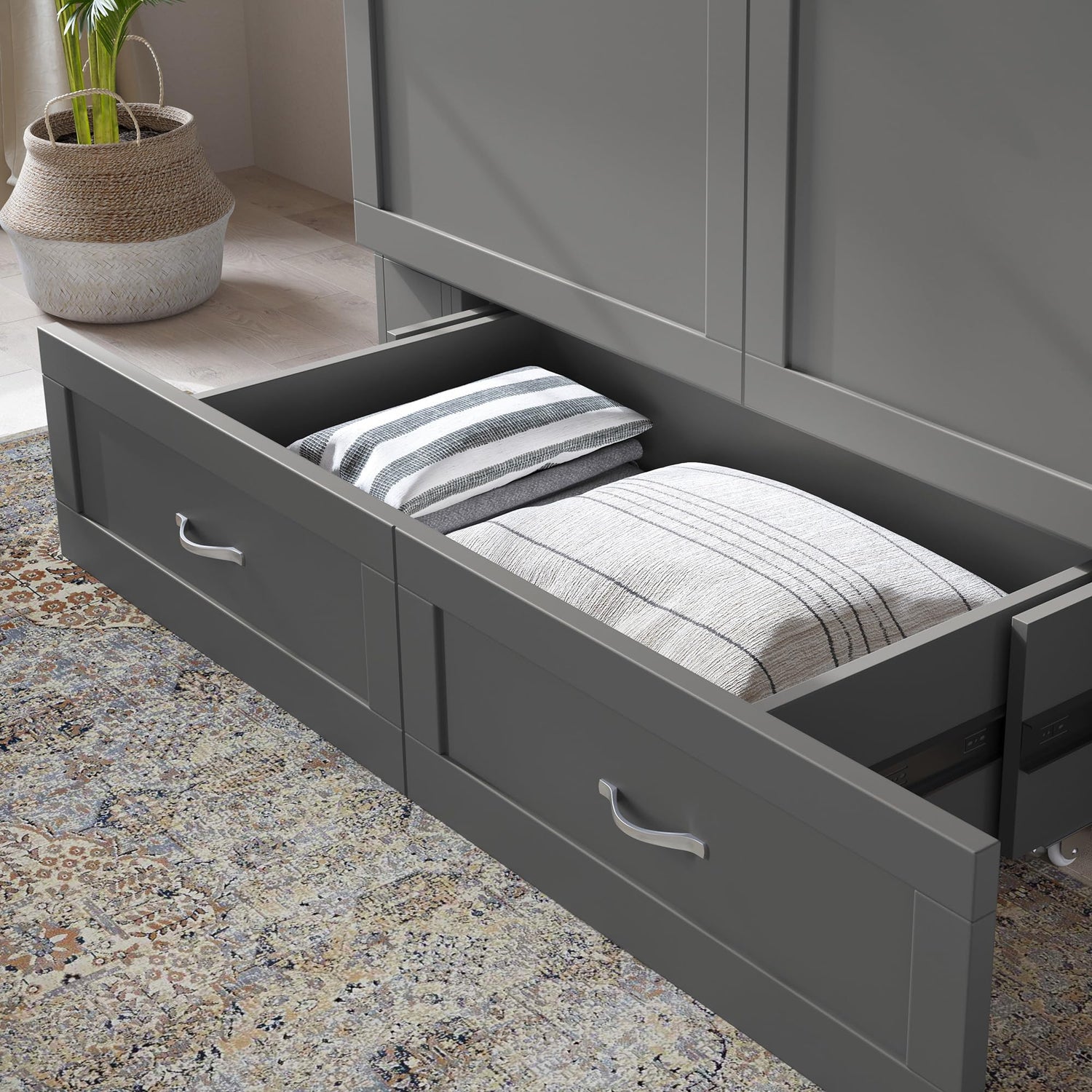 • INCLUDED STORAGE DRAWER: Extra-large drawer for storing your blankets and pillows; DRAWER DIMENSIONS: 33"W x 17.25"D x 8.63"H