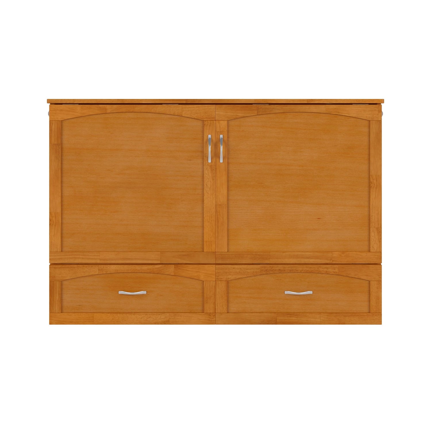 AFI, Marion Queen Wood Murphy Bed Chest with 6" Mattress, Storage Drawer, & Built-in Charger, Light Toffee