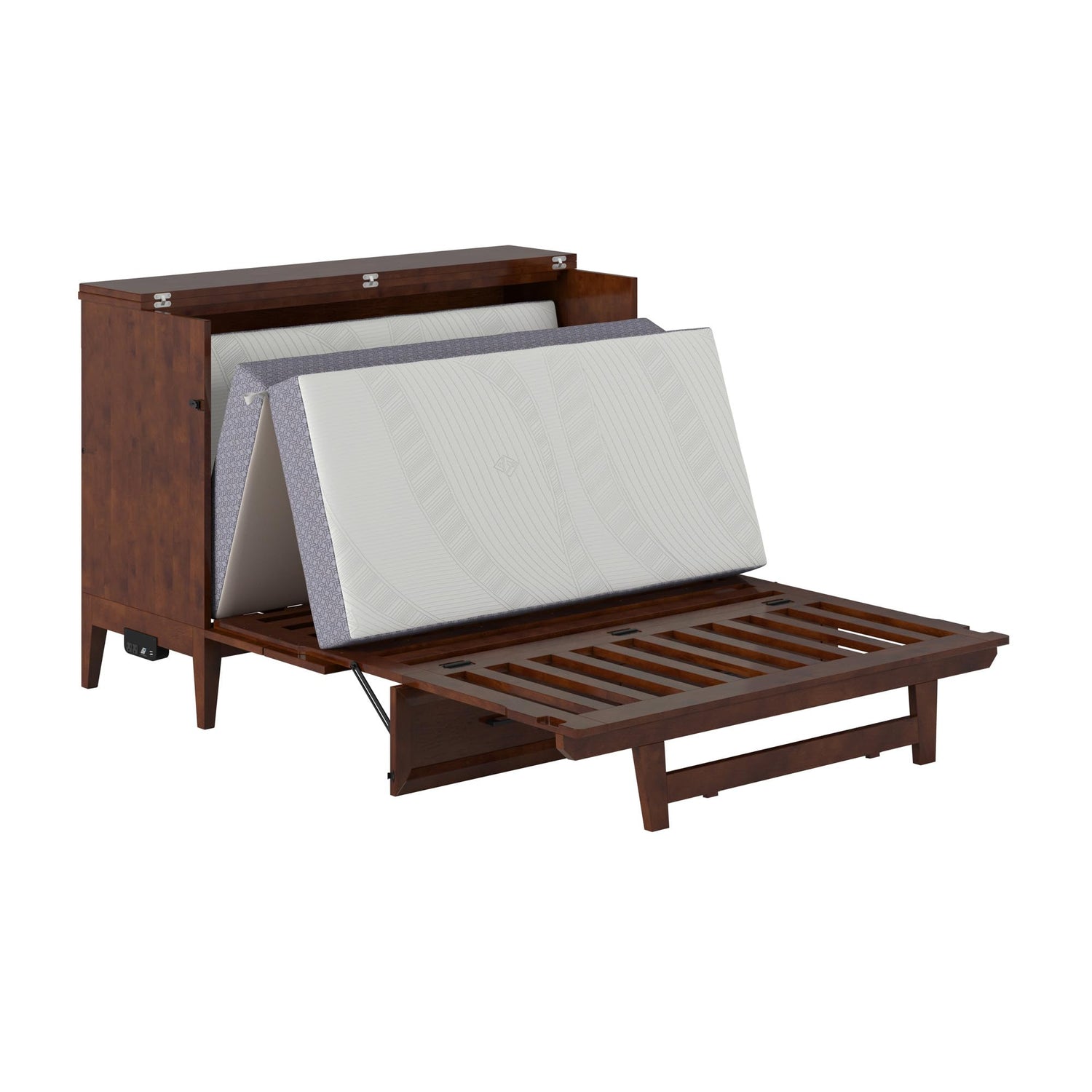 AFI, Santa Fe Full Murphy Bed Chest with 6" Mattress & Built-in USB Charger, Walnut