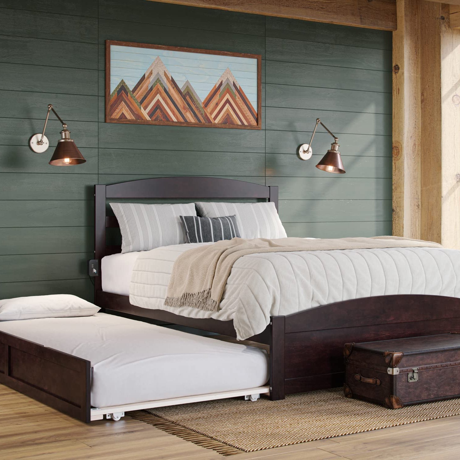 AFI, Warren Full Platform Bed with Matching Footboard & Twin Trundle, Espresso
