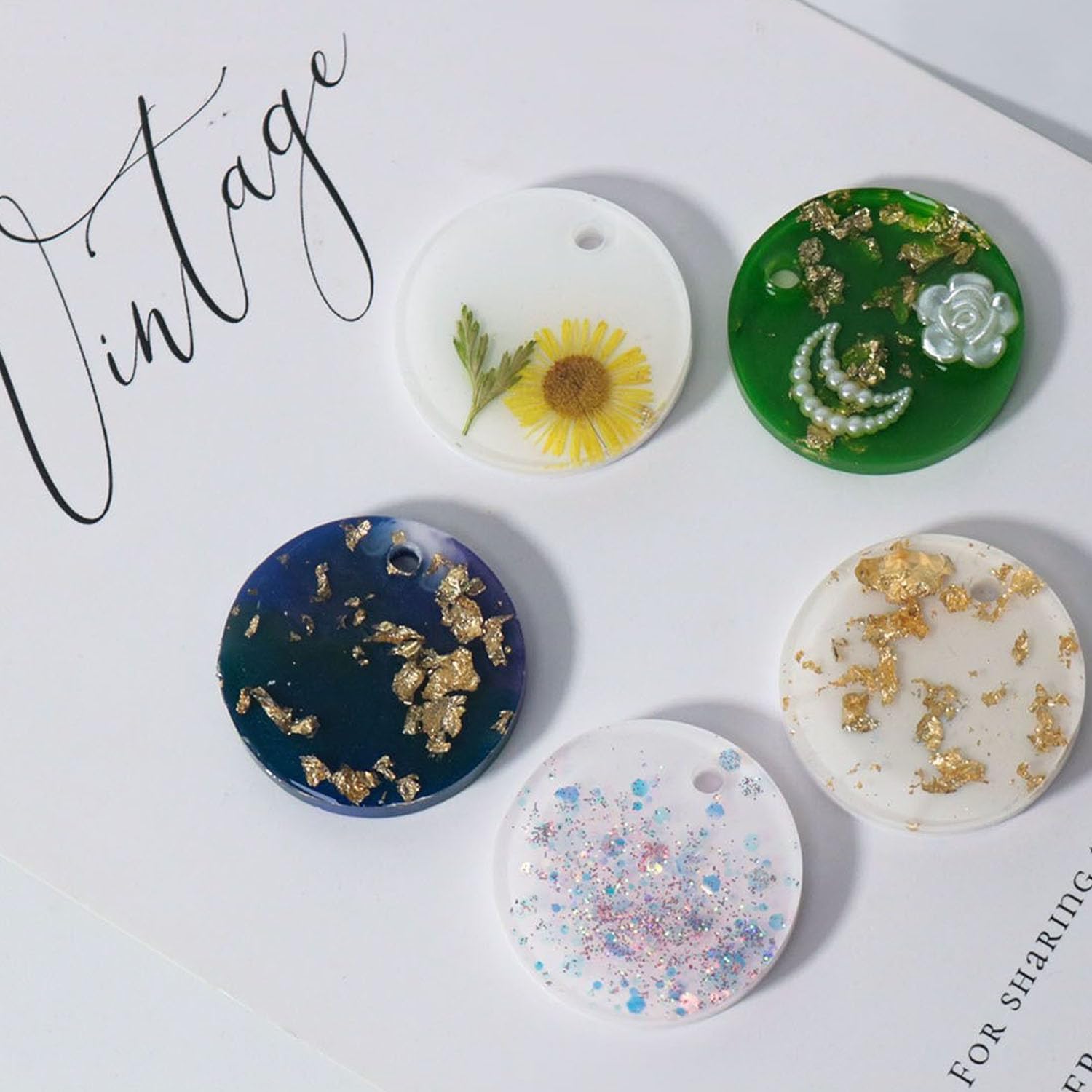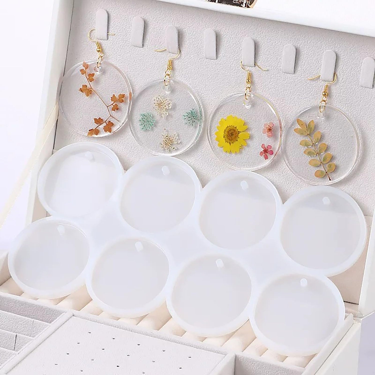 Details: AFINSEA 25 Cavity Set of Large,Medium,Small Shiny Flat Circle Silicone Mold, Drilled Round Earrings Pendant Mold