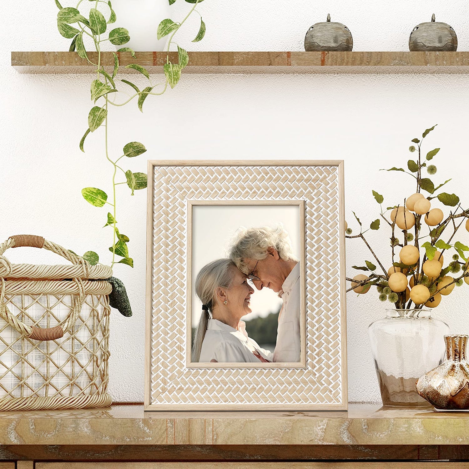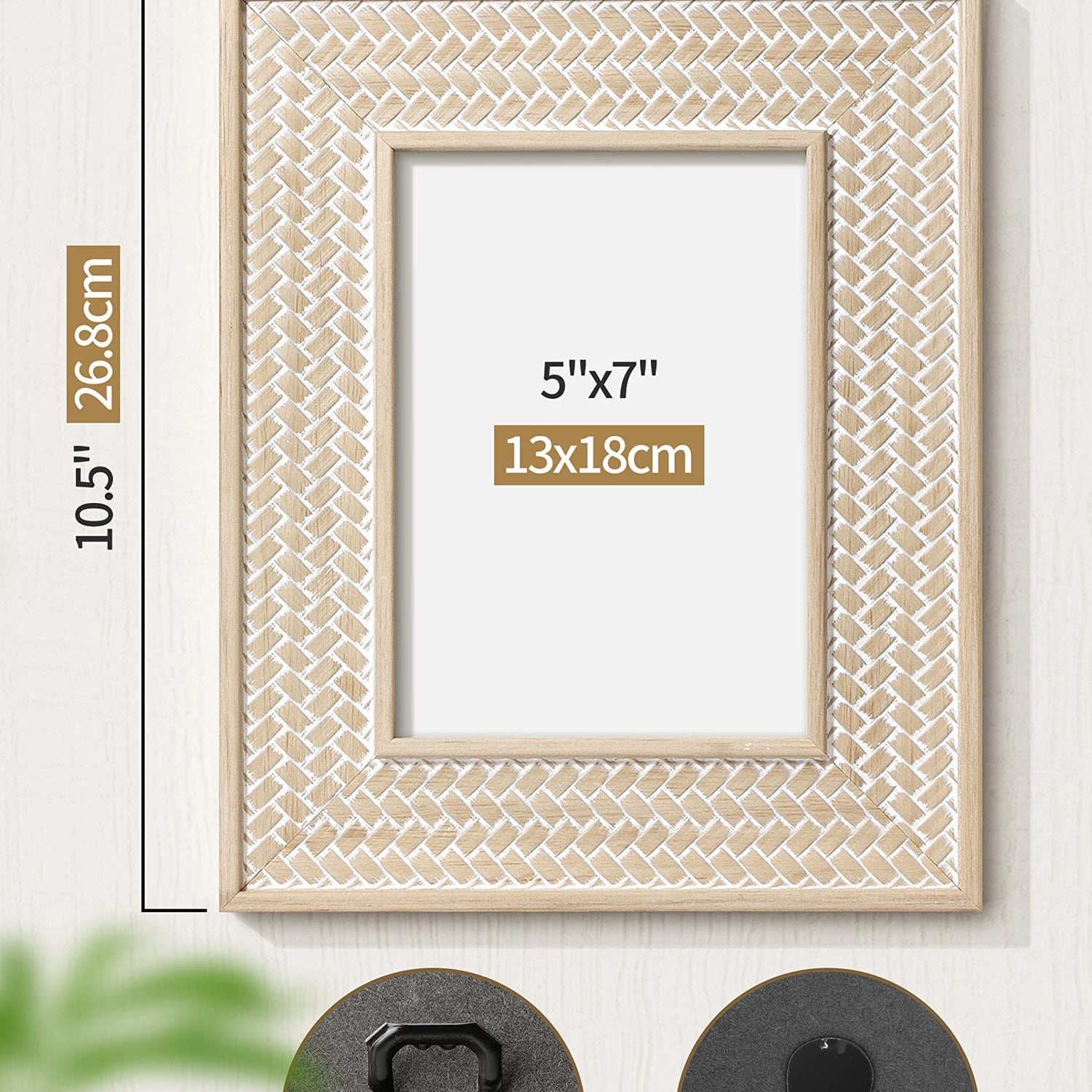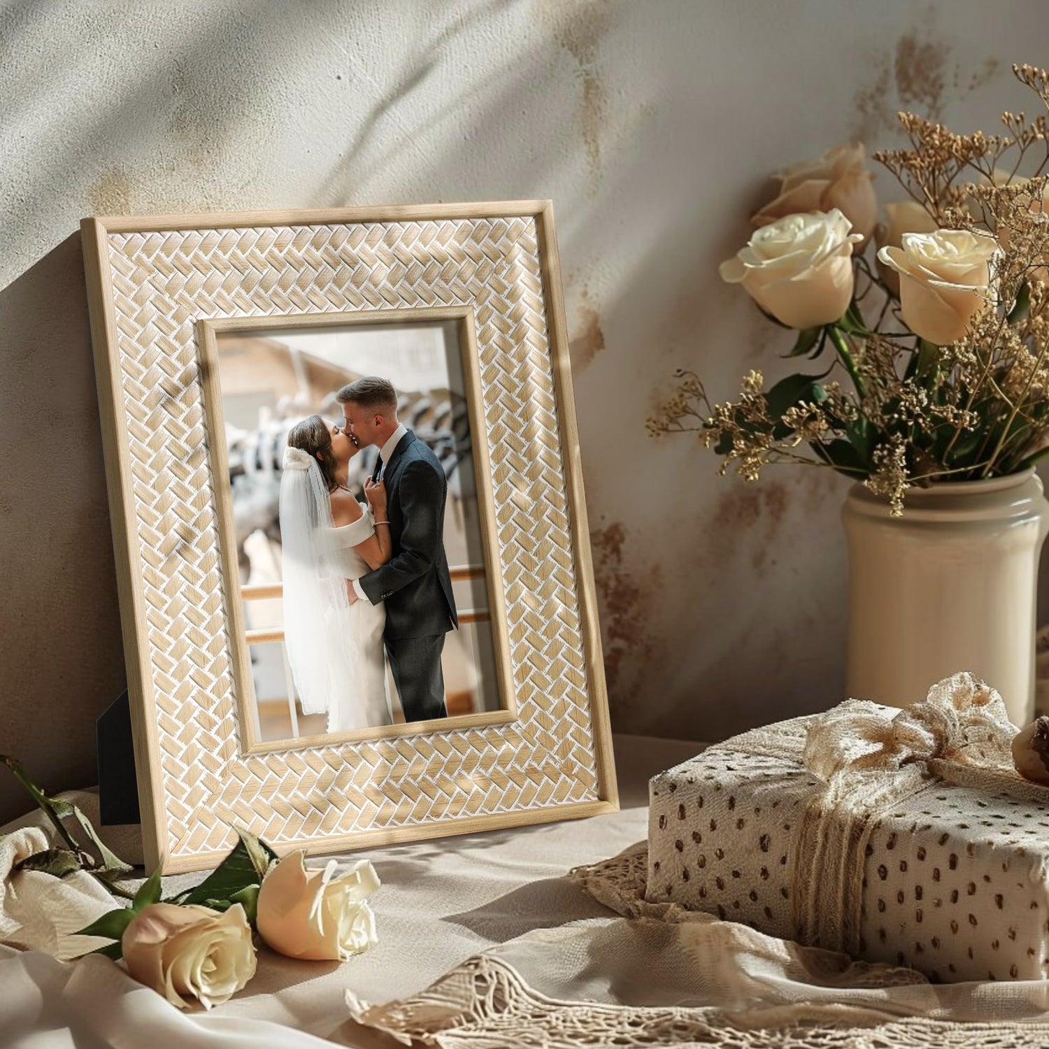 Afuly 5x7 Picture Frame Natural Boho Picture Frames Beige Chic Bohemian Photo Frame Desk Picture Frames for Wall Hangings Home Decor, Wedding Gifts for Couple Grandma Mom Women